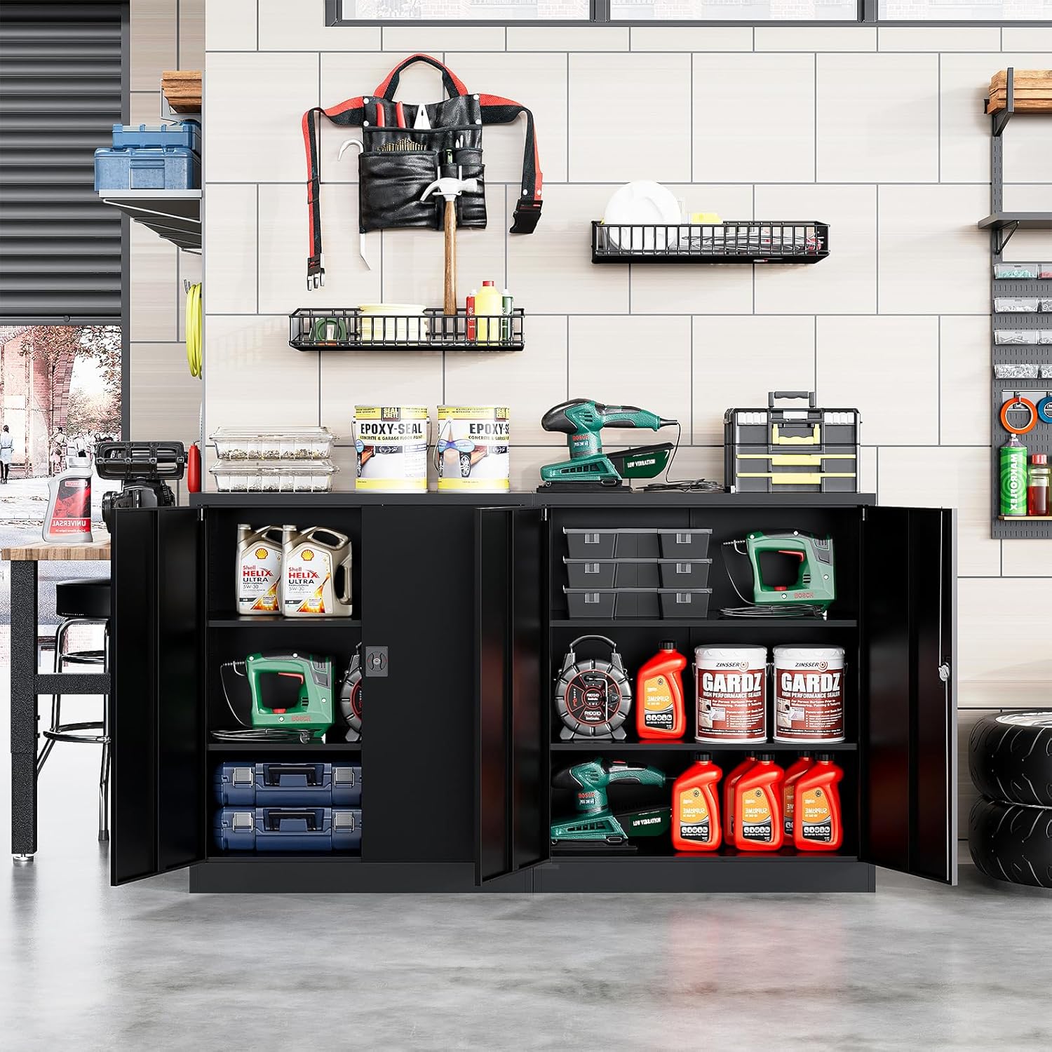 - 【Multi-Uses】This metal storage cabinet with doors and shelves can be used in the home, office, garage, workshop, school, or anywhere you need additional storage.