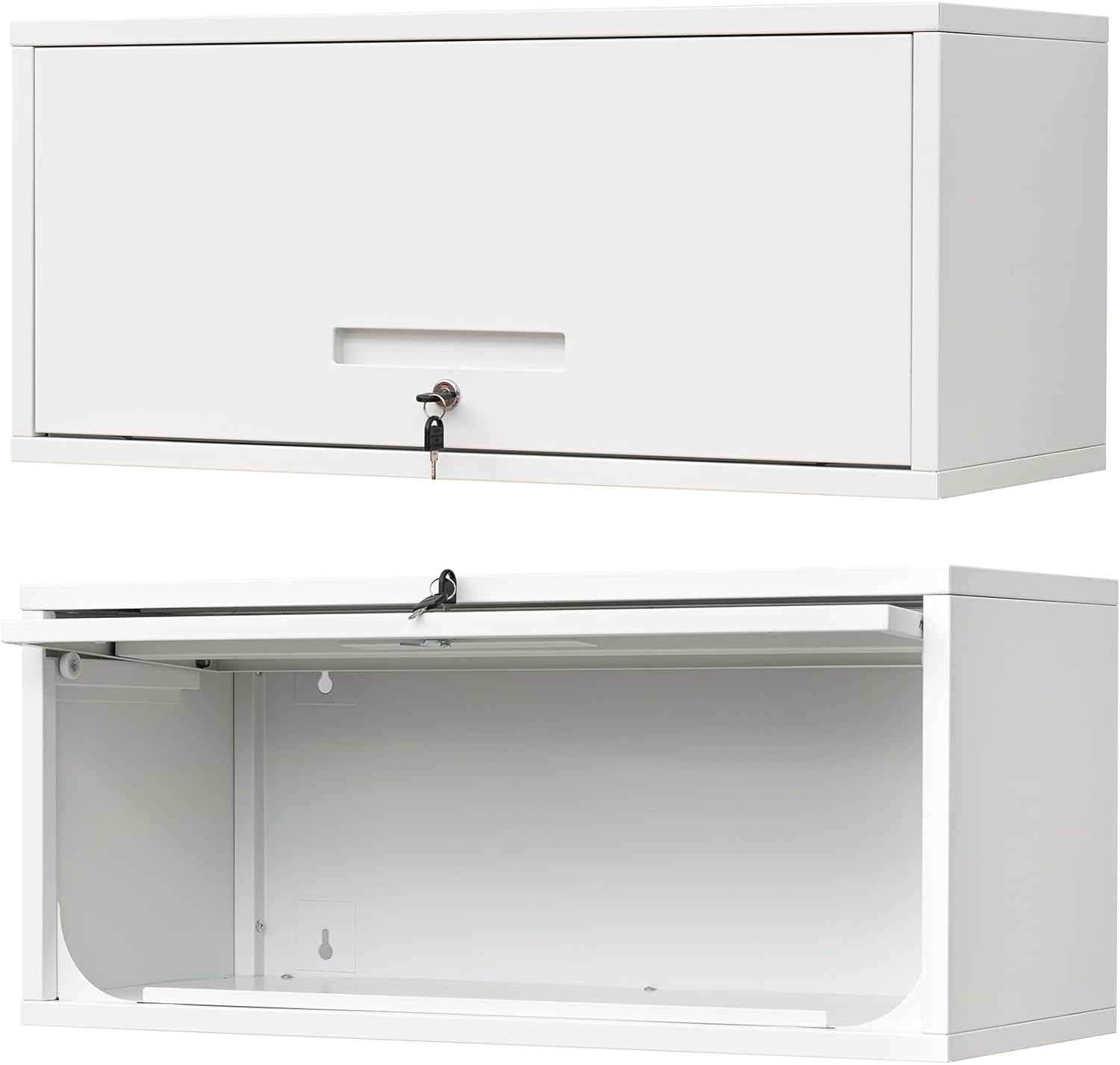 Metal Wall Storage Cabinet with Up-flip Door, Wall-Mounted Storage Cabinet for Garage, Warehouse, Home, Office, Assembly Required (White)