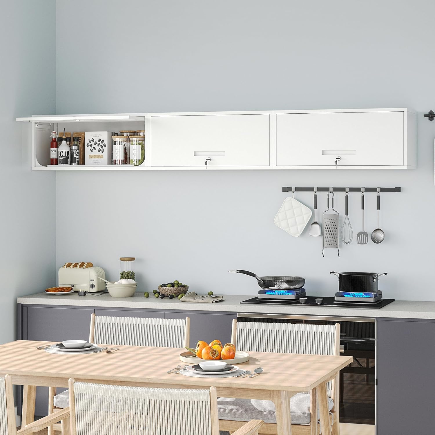 - 【Up-Flip Door Design】The wall cabinet adopts an up-flip door design, and the maximum opening and closing angle can reach 90°, which is convenient to open and close without occupying space.
