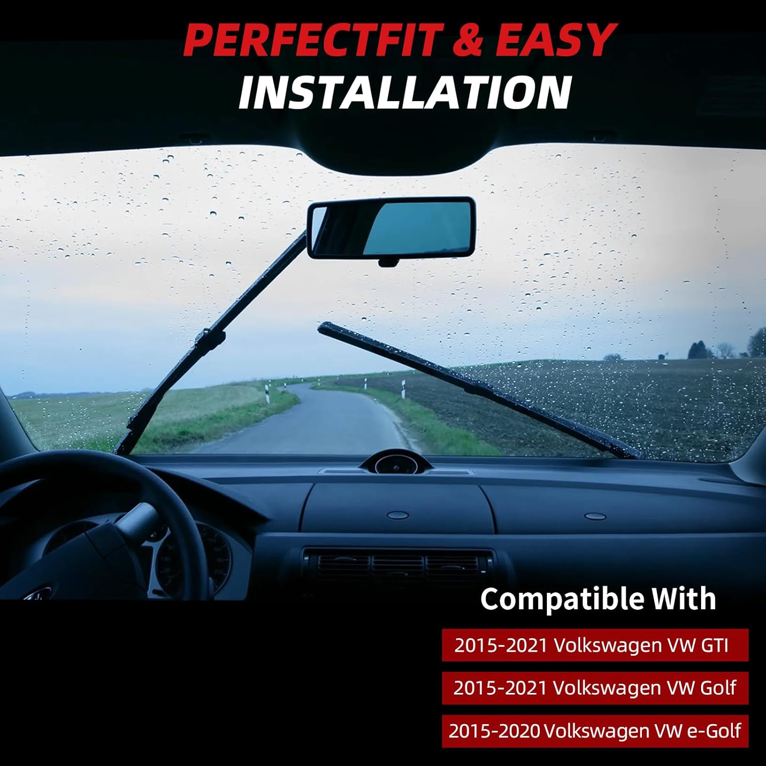 - [26"+18"+11" Perfect Fitment]: Replacement for VOLKSWAGEN VW Golf 2015-2021, E-Golf 2015-2020, GTI 2015-2021. Our windshield wiper blades are engineered to provide a perfect fit for vehicle models, ensuring optimal performance and coverage