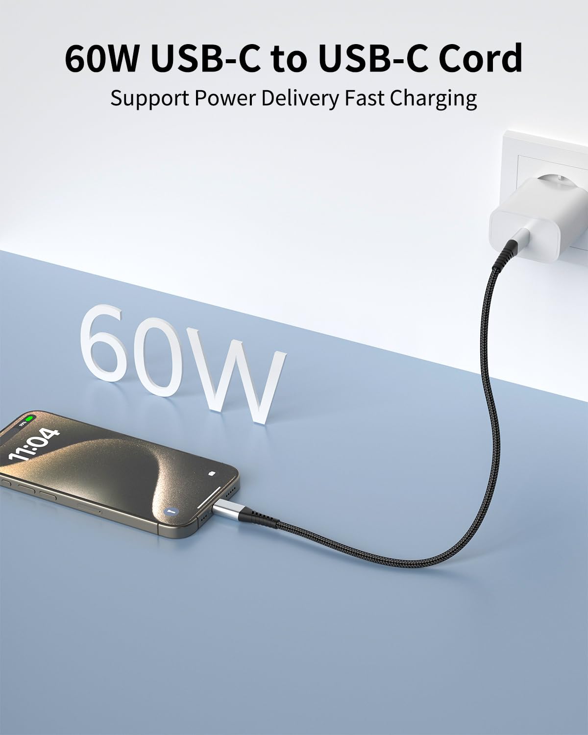 1FT USB C to USB C Cable, 3Pack Short USB Type C to C Cable 60W Fast Charging 1 Foot USBC to USBC Cord Braided for iPhone 16 15 Pro Max, Samsung Galaxy S25 A16, Moto G8, Google Pixel
