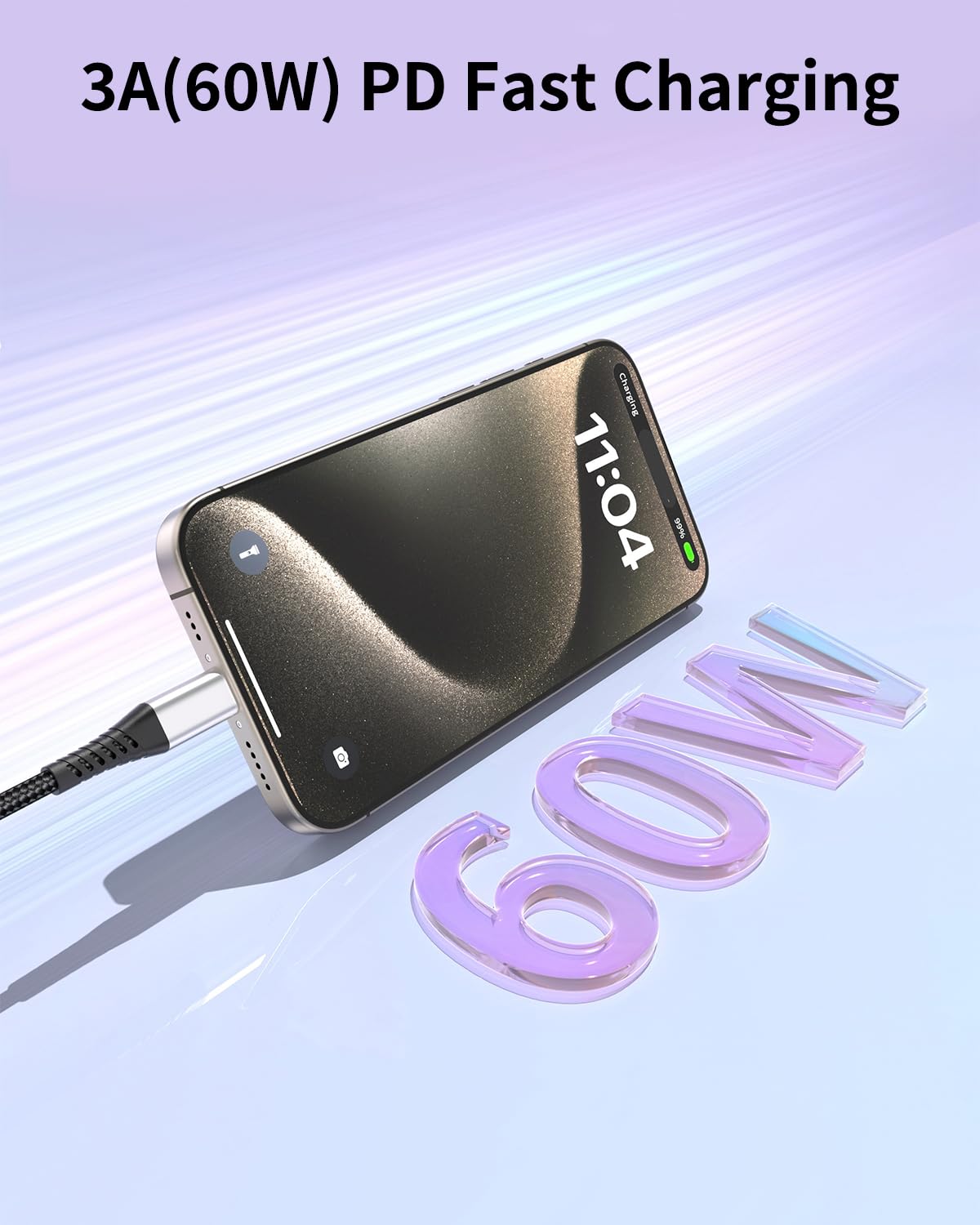 USB C to USB C Cable 3FT, 3-Pack 60W USB Type C to C Fast Charging Cable Braided 3 Foot USBC to USBC Cord for iPhone 16 15 Pro Max, Samsung Galaxy S23 S22, Moto LG, Google Pixel, iPad Air 4 (1M)