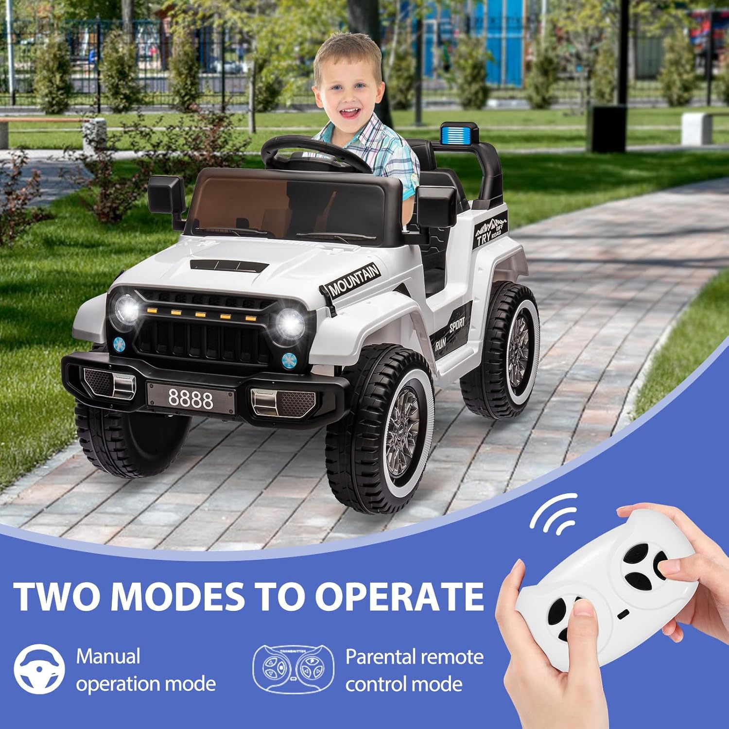 Hetoy 12V Kids Ride On Truck Car, Battery Powered Electric Car w/Parent Remote Control, Spring Suspension, 3 Speeds, Horn, Music & Story, Kids 4 Wheeler Electric Vehicle Toy, White