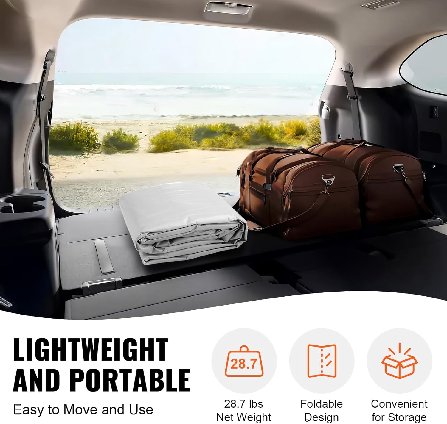 - Durable Material: The top canopy fabric is 210g PE plastic woven, while the side panels are 180g PE plastic. Both are crafted with a 16x16 weave pattern for thickness and resistance to water pooling. Double-layer heat-sealed seams and reinforced Velcro attachments ensure durability and longevity.