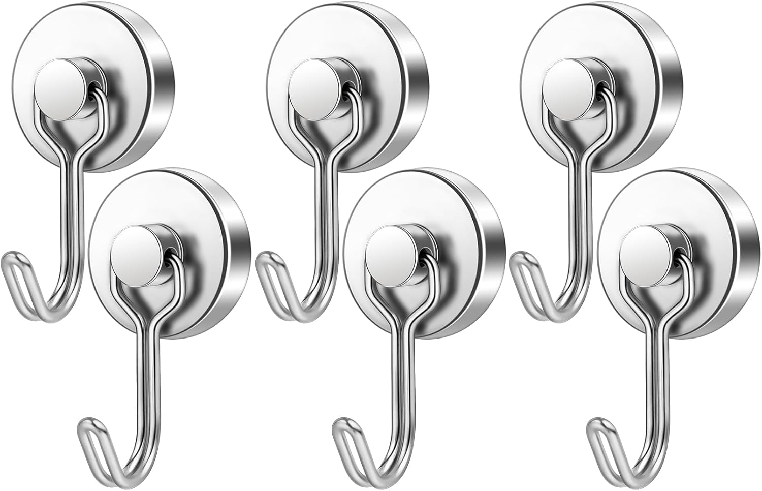 FINDMAG Magnetic Hooks, 60lbs+ Magnetic Hooks for Cruise Ship Essentials, Rare Earth Magnet Hooks Heavy Duty for Hanging, Magnetic Hanger for Garage, Grill, Fridge, Toolroom, Workplace, 6 Pack, Silver