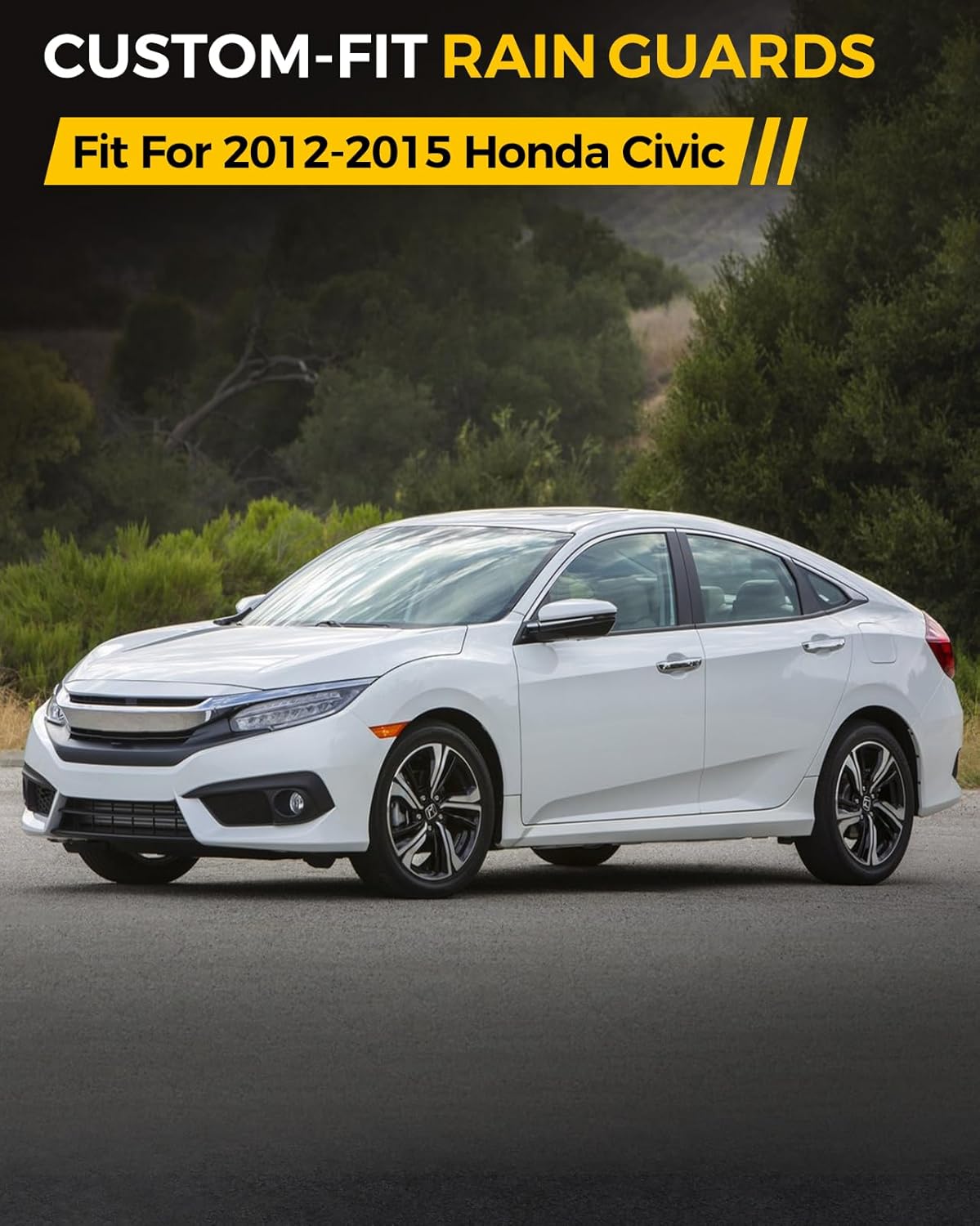 - 【Applicable Vehicles】The window visor is designed to fit your vehicle based on its year, brand, and model. These high-quality automotive window rain guards CUSTOM FIT only for 2012-2015 Honda Civic.