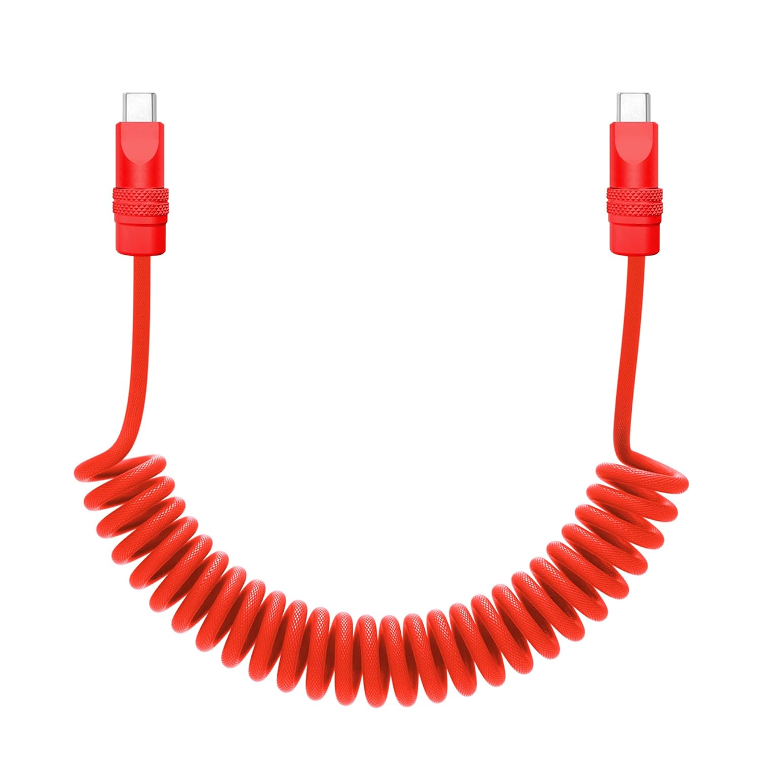 chubbycable Curly Chubby - Retractable Fast Charging Cable 240W Coiled Charger Cord for Car Durable USB-C Cable for Phones, Tablets and More, Red+Red, Type-C to Type-C, 1.3FT-2.3FT