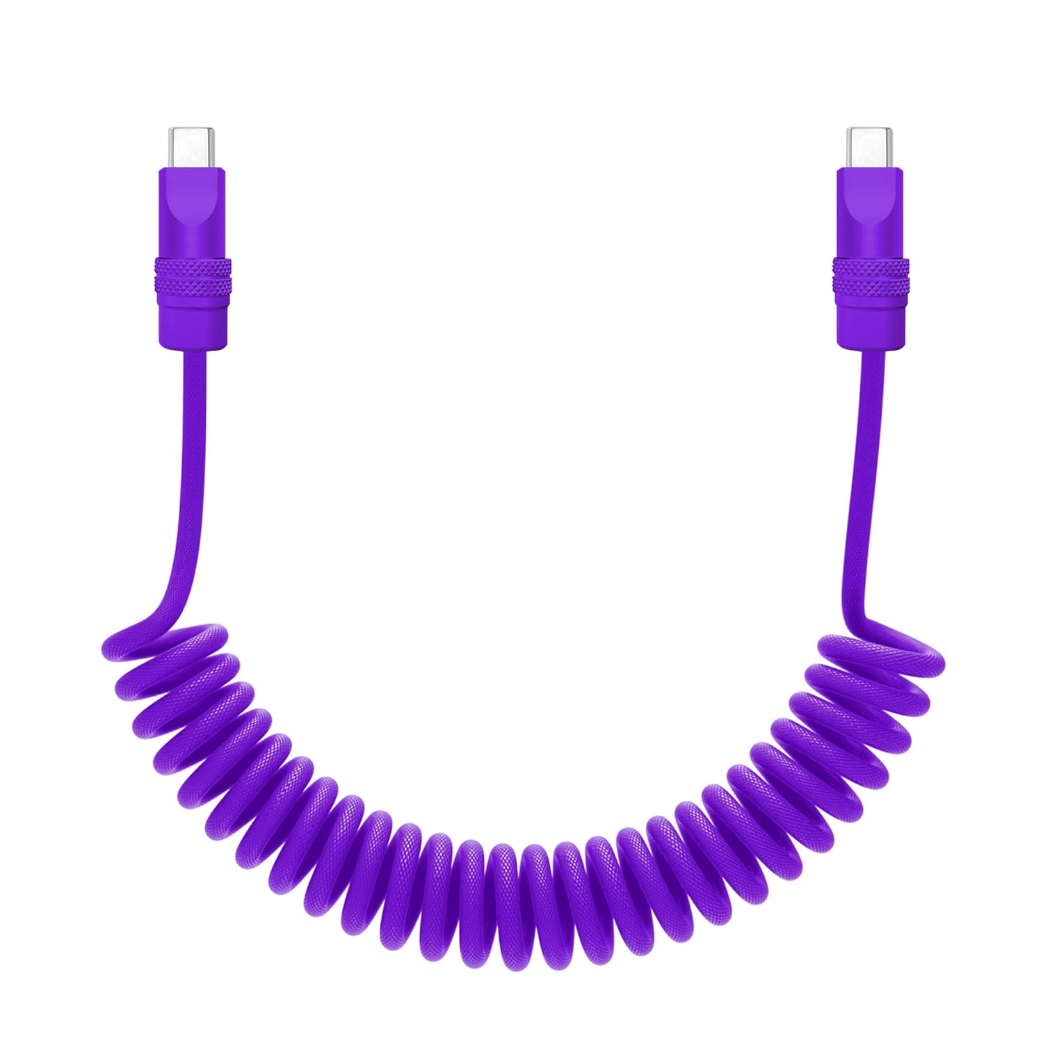 chubbycable Curly Chubby - Retractable Fast Charging Cable 240W Coiled Charger Cord for Car Durable USB-C Cable for Phones, Tablets and More, Purple+Purple, Type-C to Type-C, 1.3FT-2.3FT