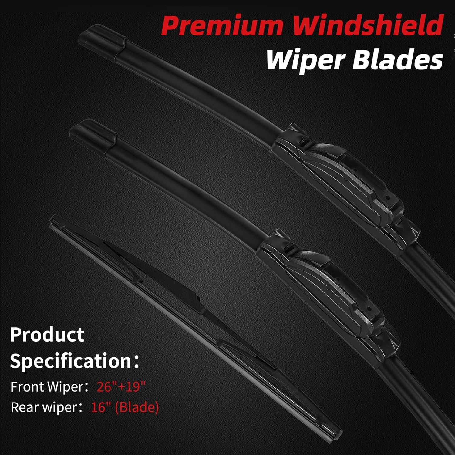 OTUAYAUTO Premium Windshield Wiper Blades - Replacement for Toyota Sienna 2006-2010 - Precision Fit, All-Weather Performance, Front and Rear Wiper Blades, J/U Hook - 26"+19"+16" (Pack of 3)