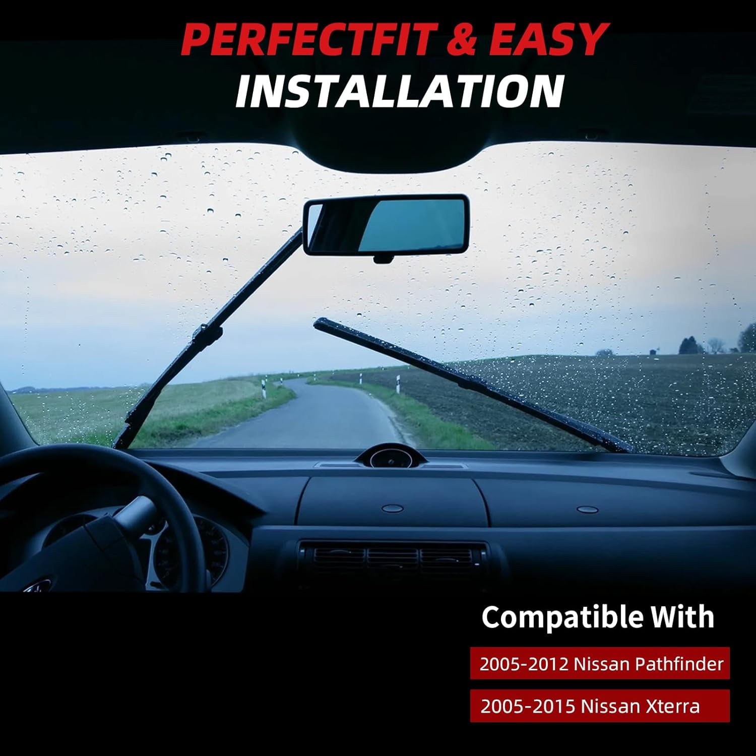 - [24"+18"+12" Perfect Fitment]: Replacement for Nissan Pathfinder 2005-2012, Xterra 2005-2015. Our windshield wiper blades are engineered to provide a perfect fit for vehicle models, ensuring optimal performance and coverage