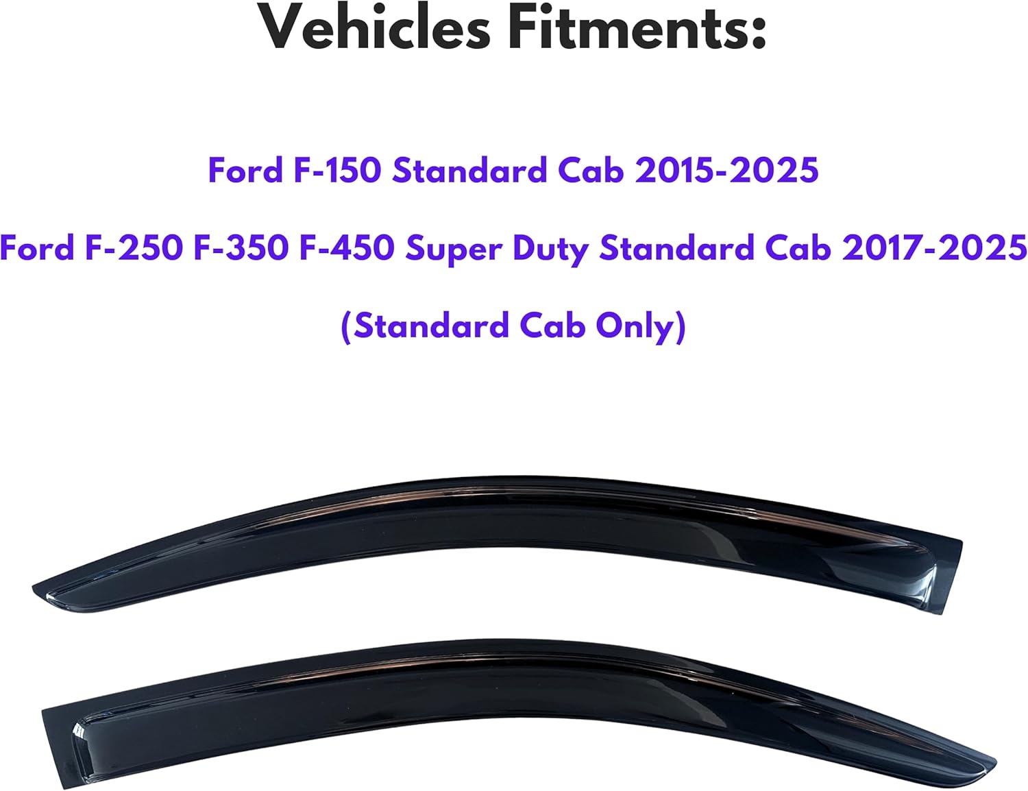 - 【Perfect Fit】KPY window visors rain guards vent deflectors compatible with Ford F-150 Regular Cab 2015 2016 2017 2018 2019 2020 2021 2022 2023 2024 2025, Ford F-250 F-350 F-450 Super Duty Regular Cab 2017 2018 2019 2020 2021 2022 2023 2024 2025