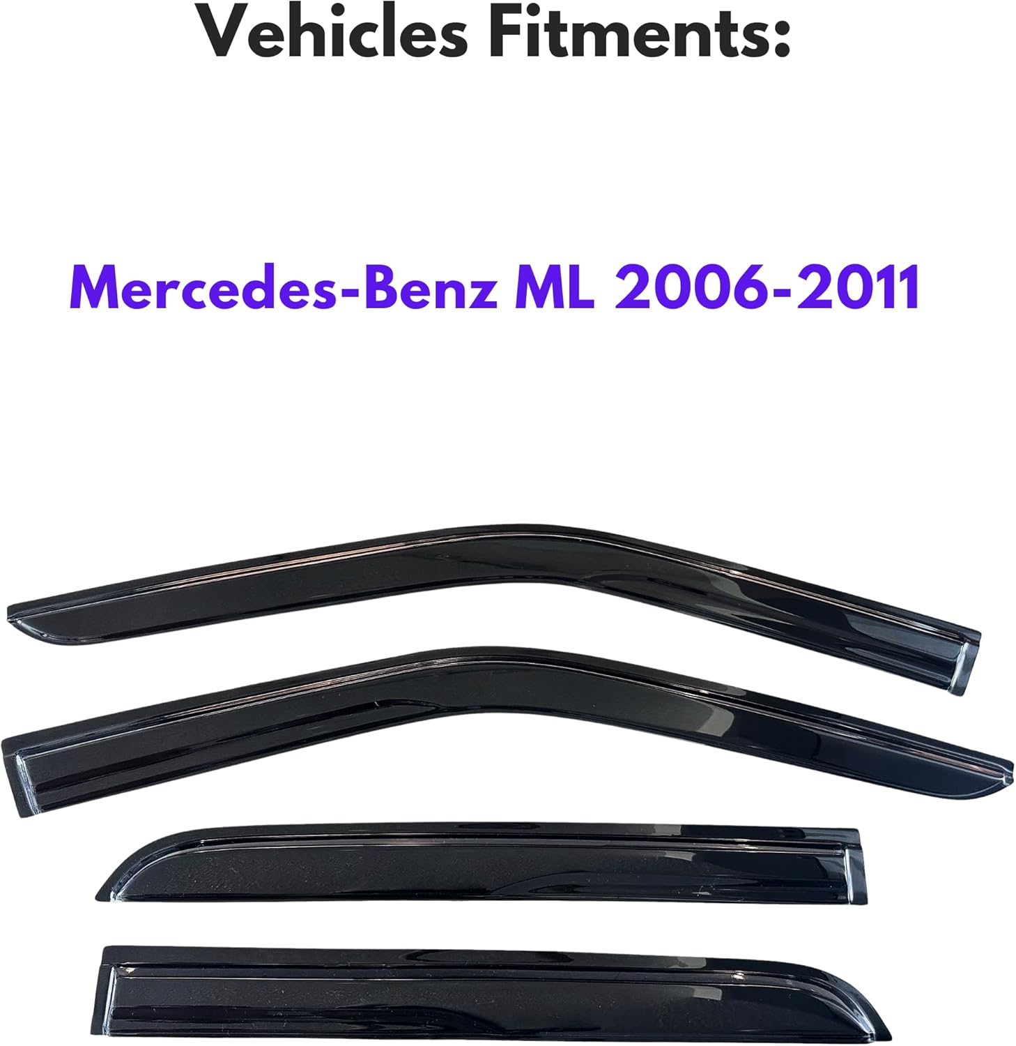 - 【Perfect Fit】KPY window visors rain guards vent deflectors compatible with Mercedes-Benz ML 2006 2007 2008 2009 2010 2011 (Mugen Style)