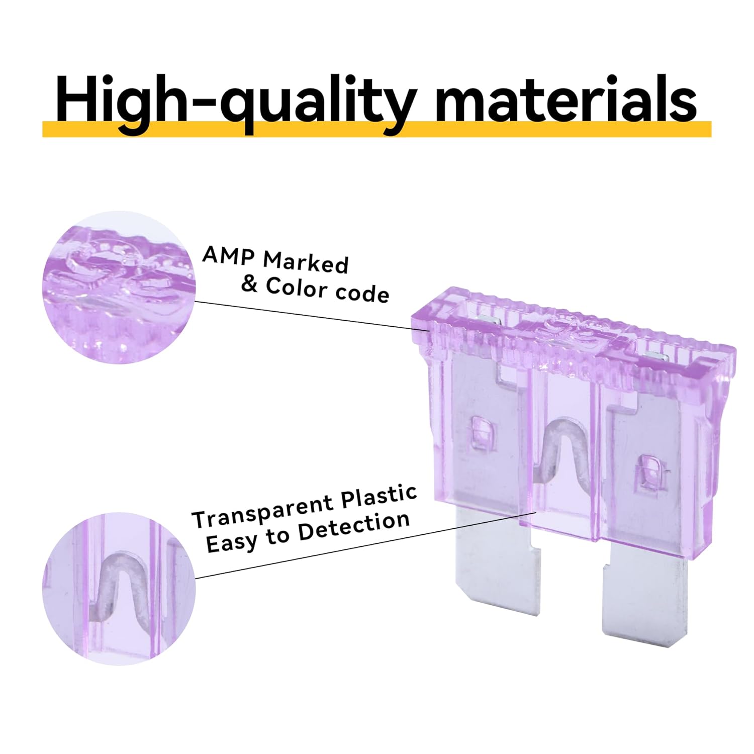 - CONVENIENT DETECTION - The plug-in blade fuses are made from transparent PES with zinc alloy inserts and transparent housings for viewing the fuse link status and quick detection of a blown fuse.
