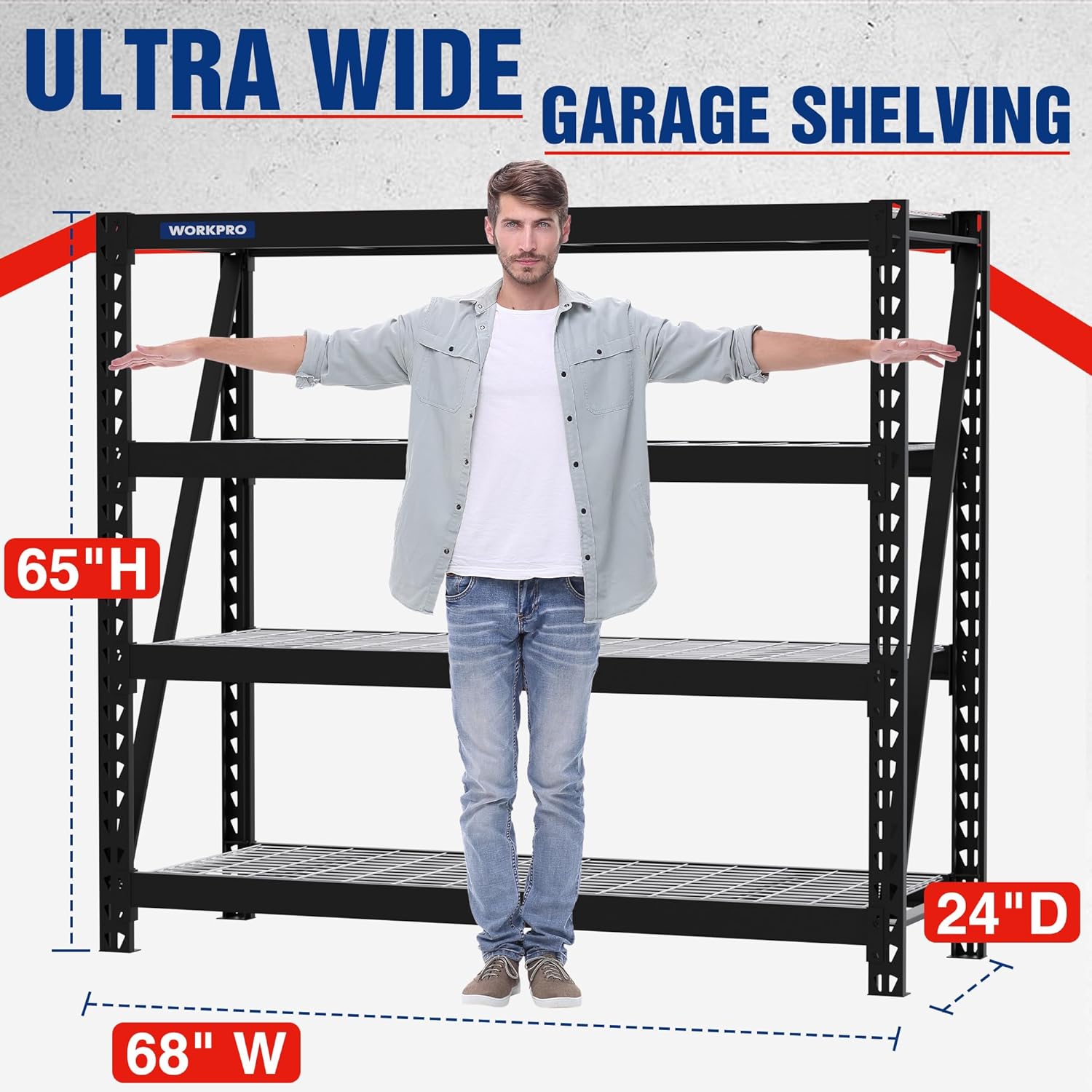 WORKPRO Garage Shelving, 68" W x 24" D x 65" H, 7200 LBS Load, Heavy Duty Metal Shelving for Storage, Industrial Shelving Storage Rack for Warehouse Kitchen Shop Basement, Black, Pack of 10