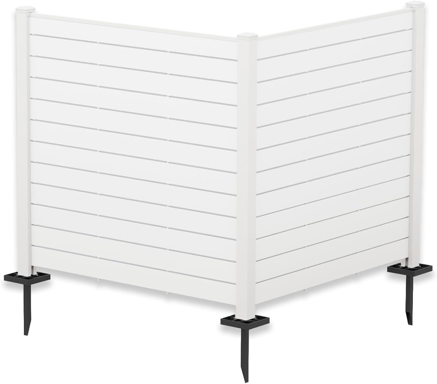 - š” Dimensions: The Kozyard W50*H48*D50 inches Privacy Fence Set includes 3 vinyl panels. The 11-inch galvanized steel stakes are easily inserted into the ground to provide a firm base for the panels, reducing direct damage from heavy rain or storms, enhancing aesthetics, and boosting durability.