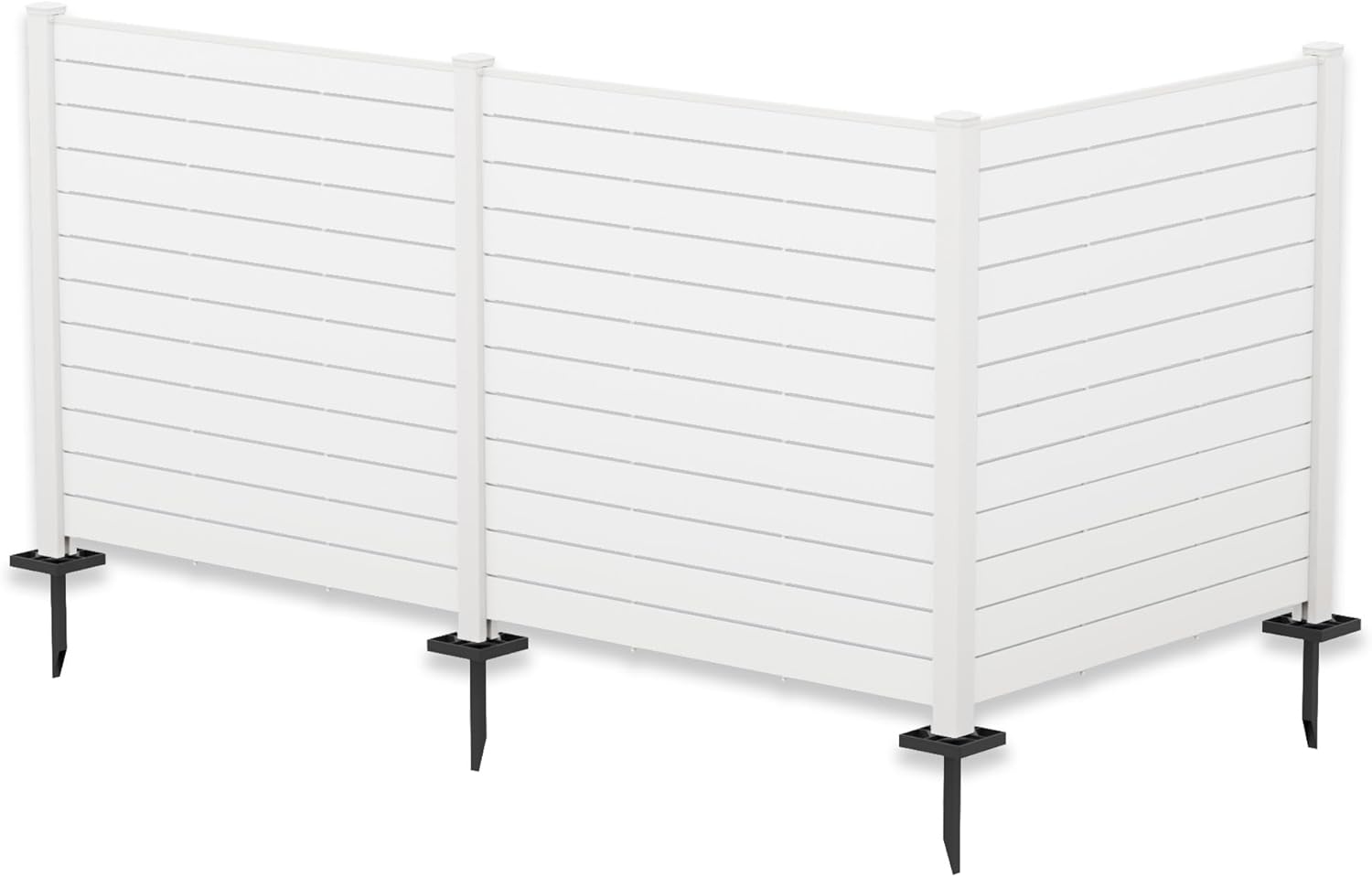 - š” Dimensions: The Kozyard W50*H48*D50 inches Privacy Fence Set includes 3 vinyl panels. The 11-inch galvanized steel stakes are easily inserted into the ground to provide a firm base for the panels, reducing direct damage from heavy rain or storms, enhancing aesthetics, and boosting durability.