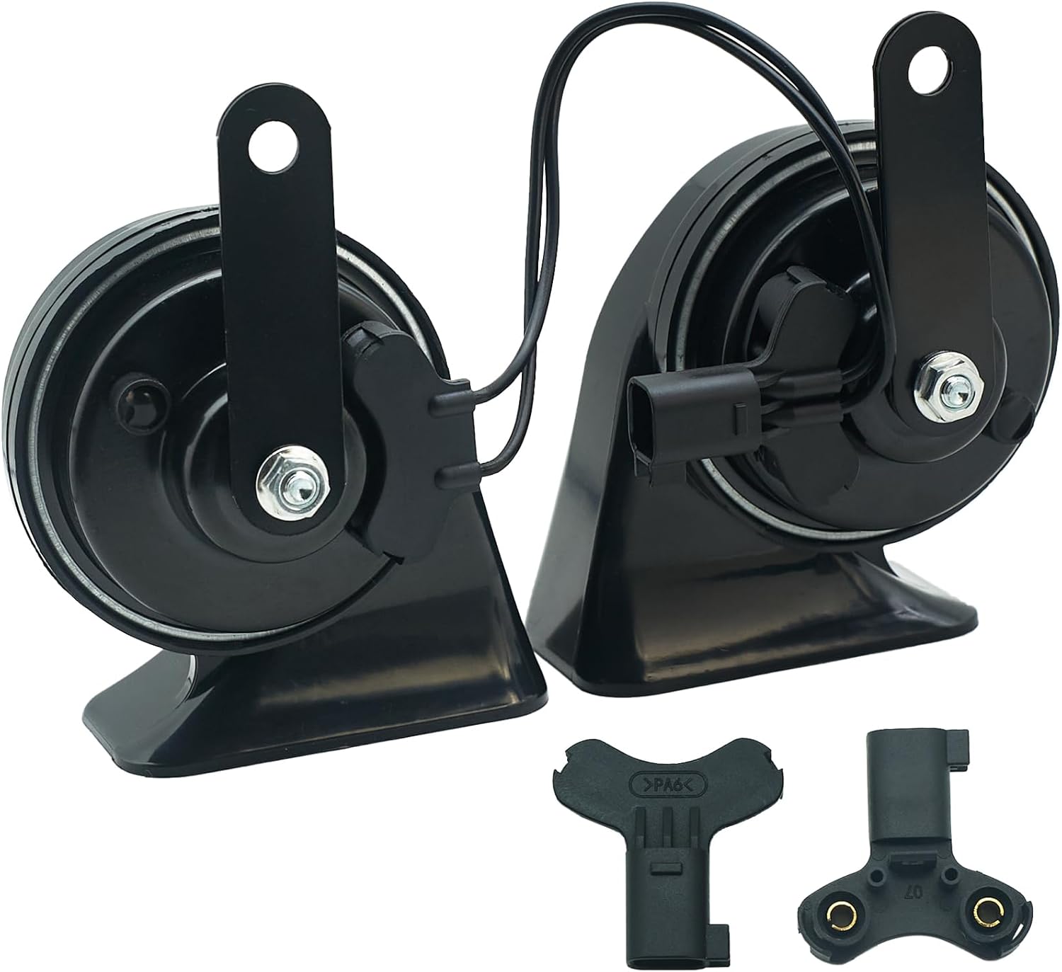 - Worth Money: Horn kit includes 1 x Low-tone Horn, 1 x High-tone Horn, 1 x Horn Connector(2-in-1 Ford), 2 x Horn Connectors(Ford), 1 x Installation Accessories. No need to buy expensive OEM parts or connector adapters