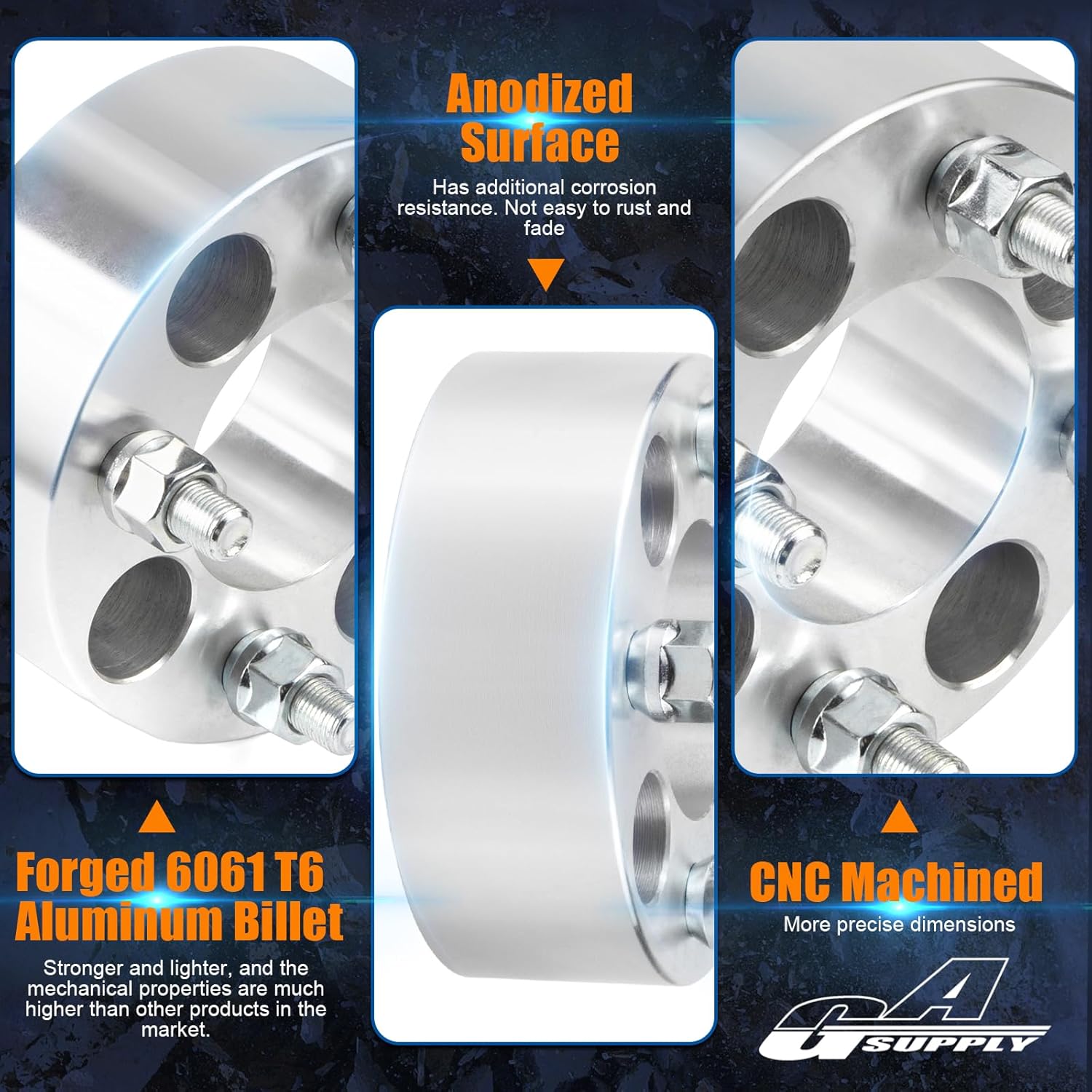 - Features - The 4x4 Wheel Spacers are CNC machined from 6061-T6 aluminum billet and pre-installed with 10.9 grade bolts, Stronger and lighter. Anodized surface has additional corrosion resistance.Not easy to rust and fade.