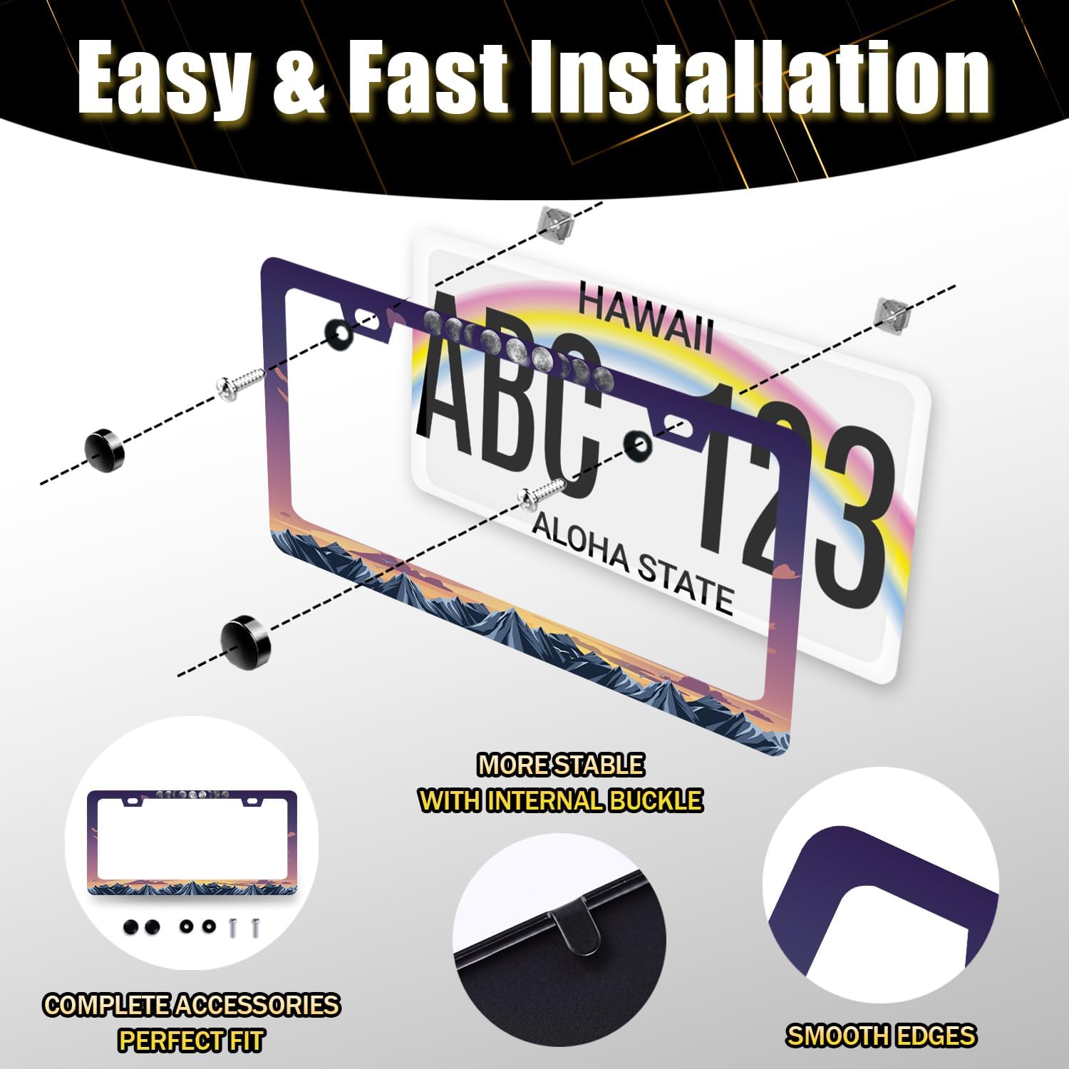 - This license plate Frame with holes, including Accessories: screws, nuts and washers. Easy to install.you don’t need to buy any other hardware or fasteners. Anti-theft caps are also included
