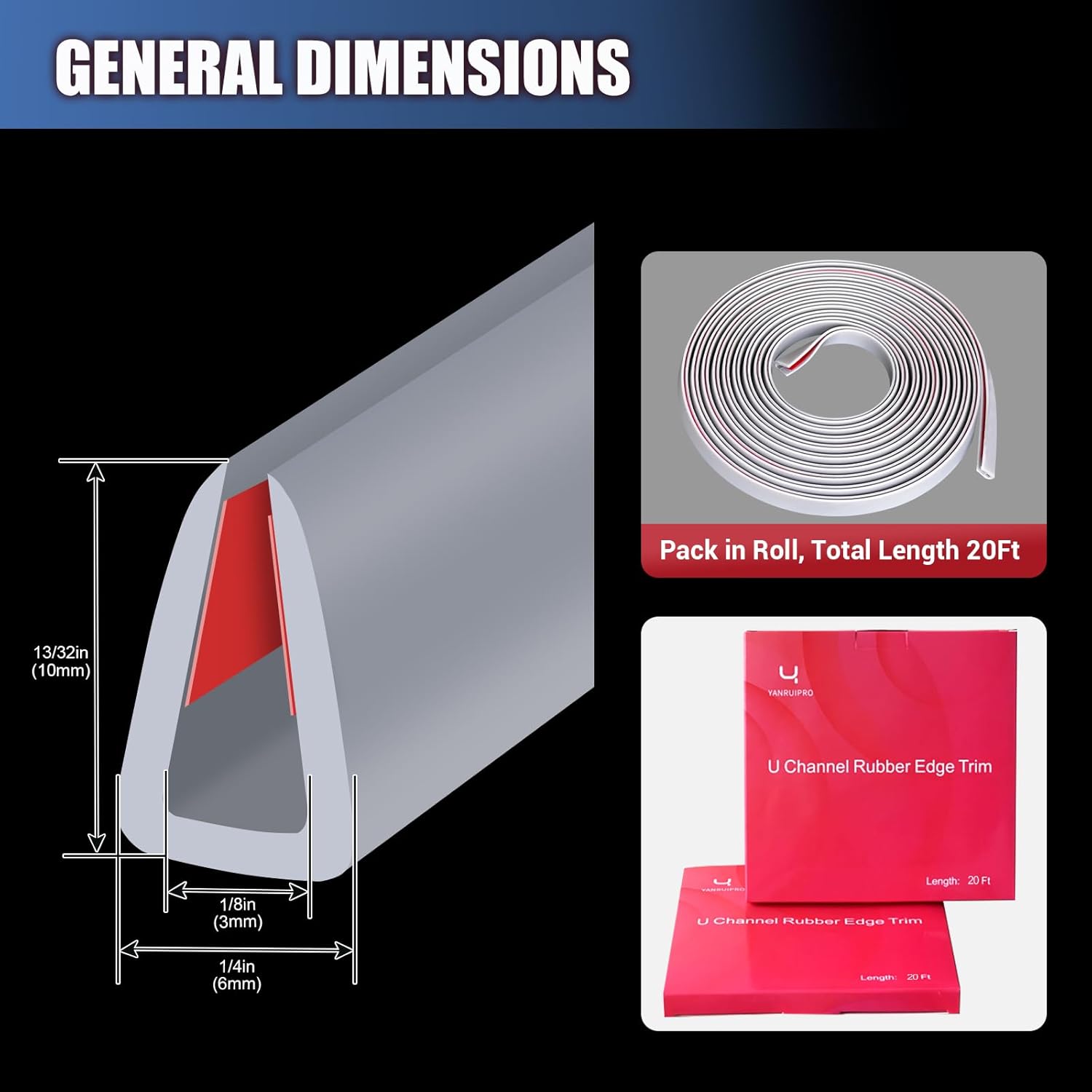 - High Quality EPDM Rubber: Durable and not easy to age, extremely hard wearing and washable. EPDM rubber material edge trim is not easily broken down by ultraviolet light and ozone, has better thermal stability, radiation resistance and weather resistance.