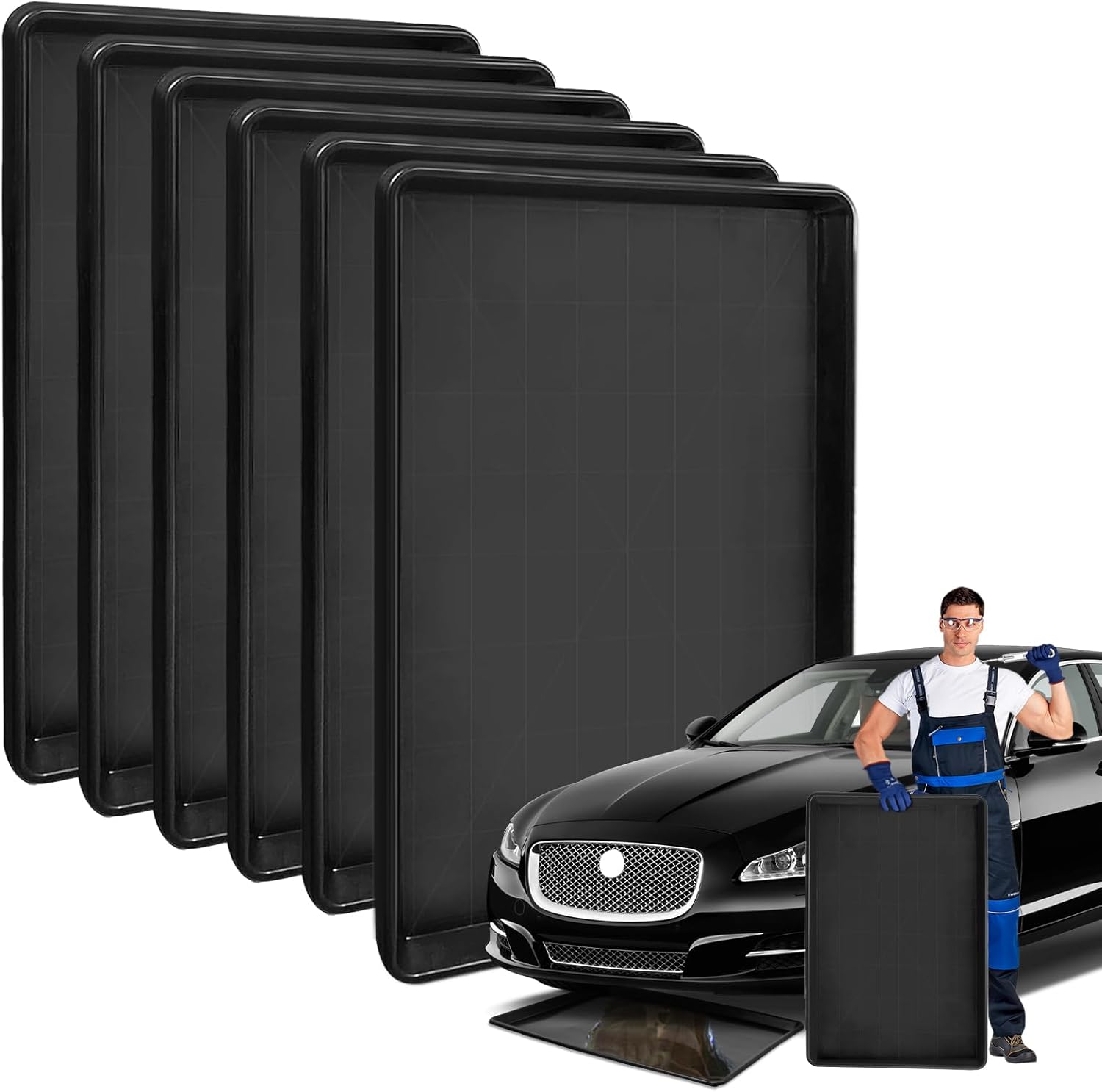 6Pcs Extra Large Car Oil Drip Pan- 35.4 x 24 x1.6 Inches Oil Drain Pan for Oil Change- Oil Drip Tray for Under Car Plastic Oil Tray, Oil Catch Pan Replacement Tray to Keep Garage Floor Clean