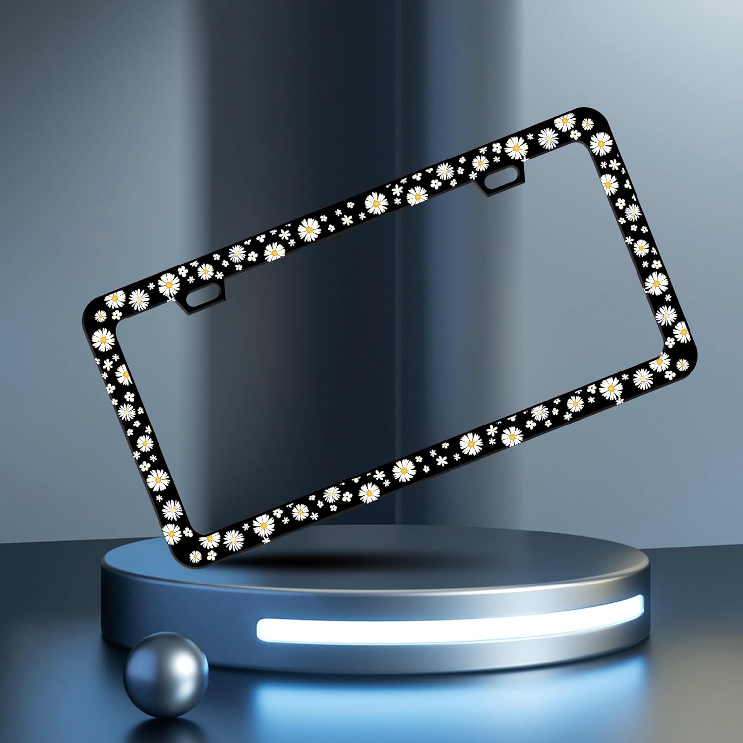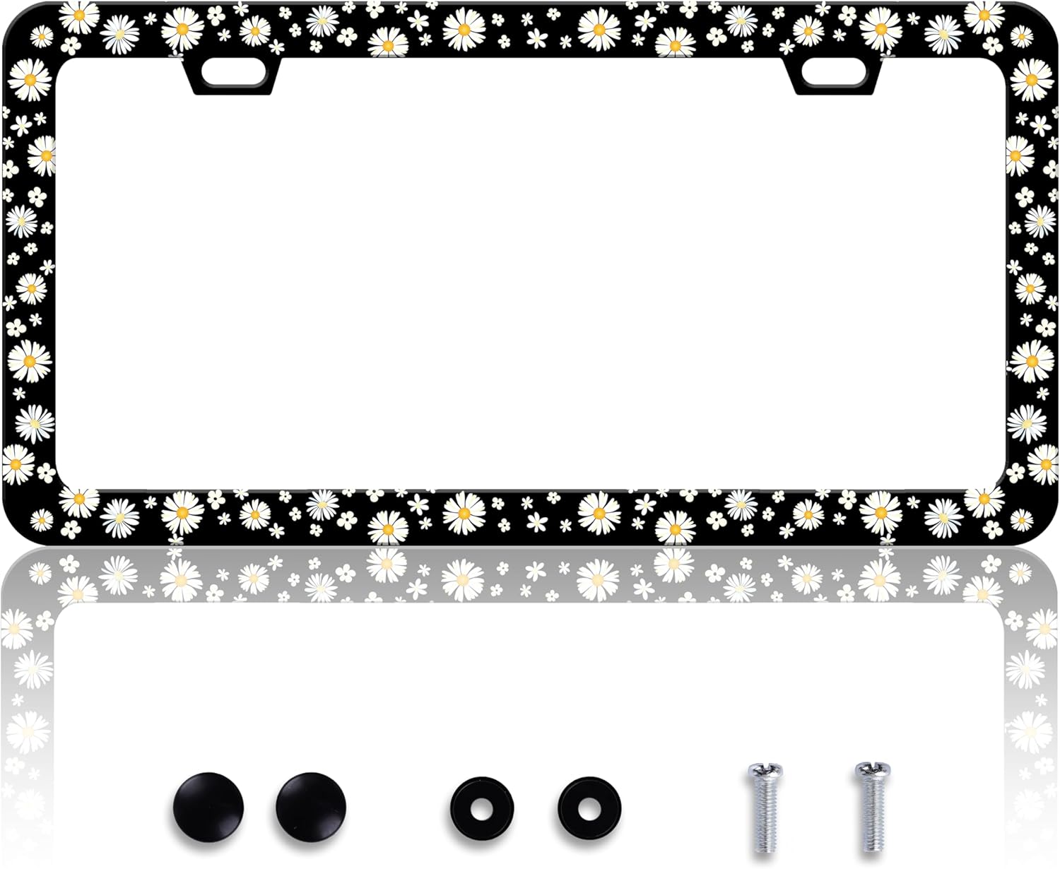 Beautiful Daisy License Plate Frame Daisies License Plate Holder Personalise Stainless Steel Funny Design Compatible with Standard License Plate Holder for USA and Canada 6 X 12 Inch with Screws