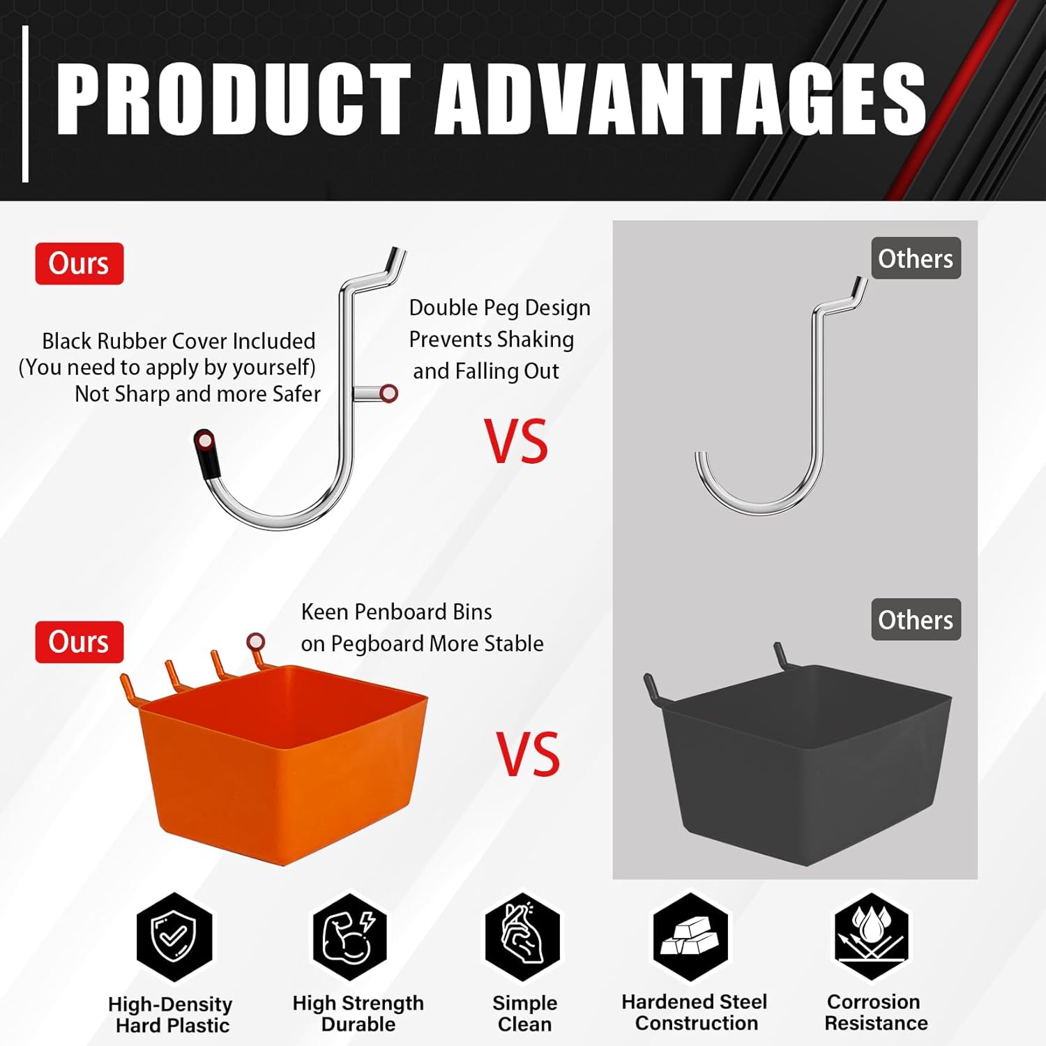- 【Premium Material】Our pegboard accessory kit is crafted from hardened steel. Surface Chrome finish provides maximum strength, resist rust and corrosion to ensure durability.