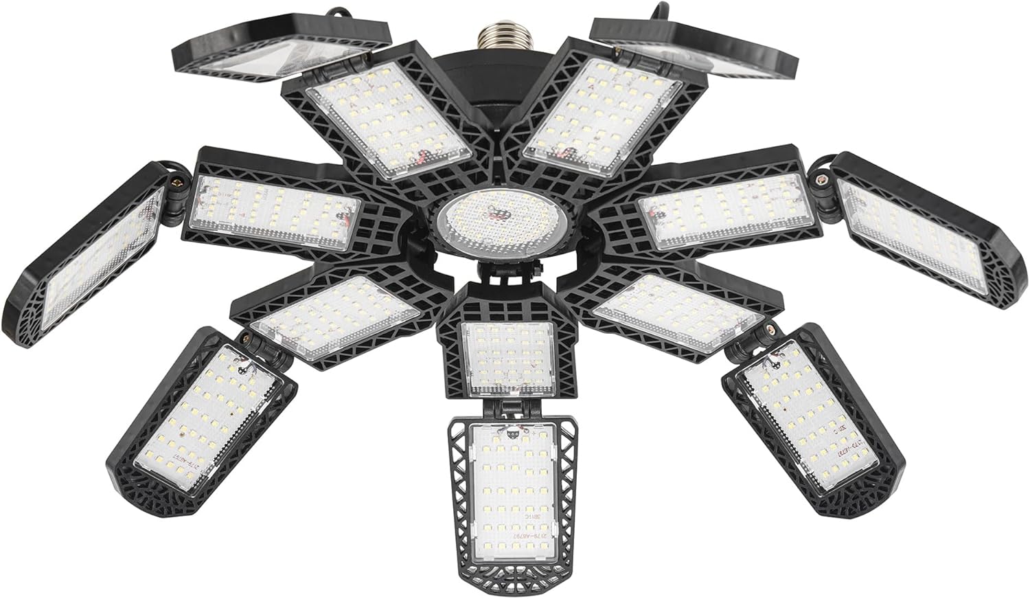 - 【14+1 Deformable Super Bright LED Garage Lights】- With 14+1 ultra-bright adjustable LED pannels. It features with 15*24 PCS top quality diodes that total 25000 lumens, CRI80+, 6500K daylight can give you 85% energy saving for your garage. The upgraded lighting fixtures have sufficient brightness and are the preferred choice for work.