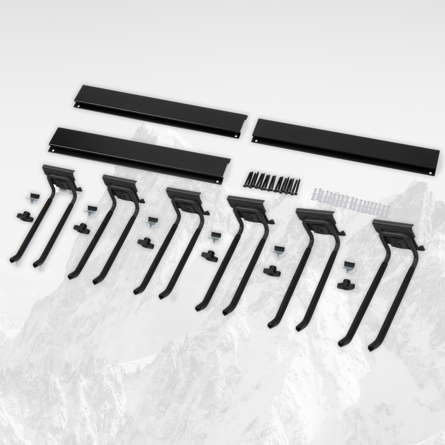 - ADJUSTABLE VERSATILE STORAGE: With a clamping screw, the hooks adjust along the wall track, accommodating various tool sizes. This garage storage system is ideal for organizing shovels, rakes, brooms, and more, making it a perfect yard tool organizer for garage.