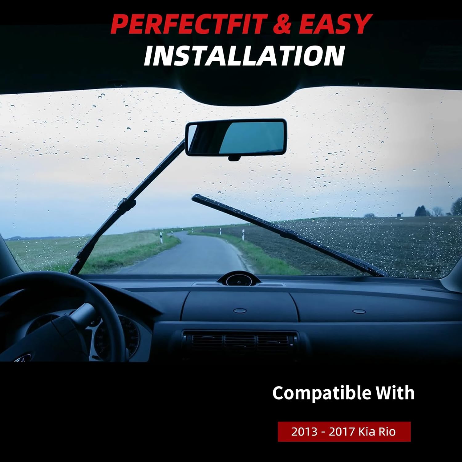 - [26"+16"+11" Perfect Fitment]: Replacement for Kia Rio 2013-2017. Our windshield wiper blades are engineered to provide a perfect fit for vehicle models, ensuring optimal performance and coverage