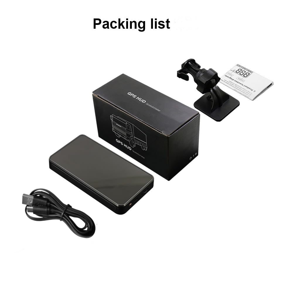 - 【9-in-1 HUD】Heads up display, it has multifunctions - Vehicle driving speed, Driving time, Driving mileage, Total Mileage, Local time, Altitule, Over-speed alarm, Fatigue driving warning, freely switch between kilometers and miles.