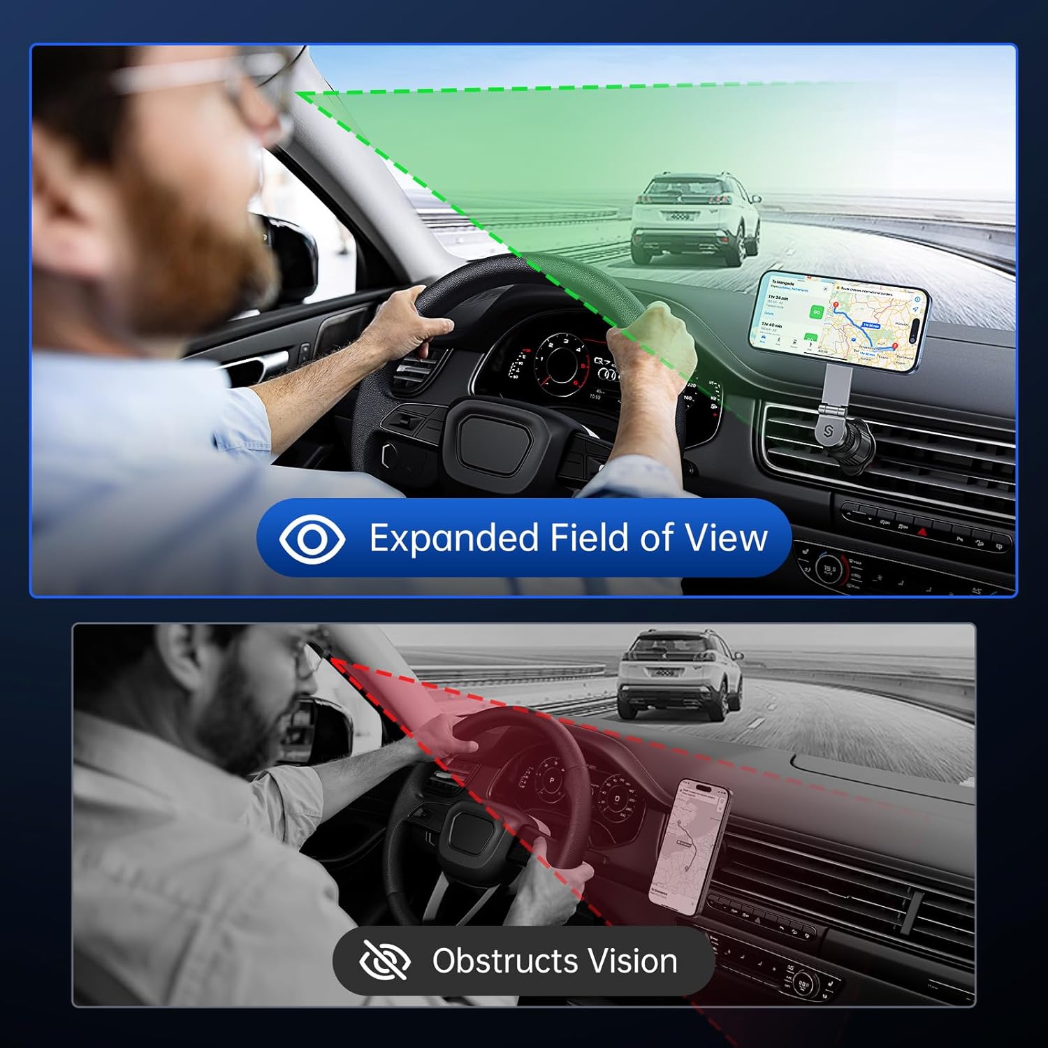- Innovative 3D Adjustment - The Syncwire MagSafe car mount features a rotatable ball joint and a revolutionary 2-axis aluminum alloy arm allowing movements in a 3D space. Adjust your phone forward, backward, up, down, or sideways effortlessly, freeing you from the limitations of conventional vent placements. This feature ensures your device is always within easy reach and perfectly angled for optimal viewing.