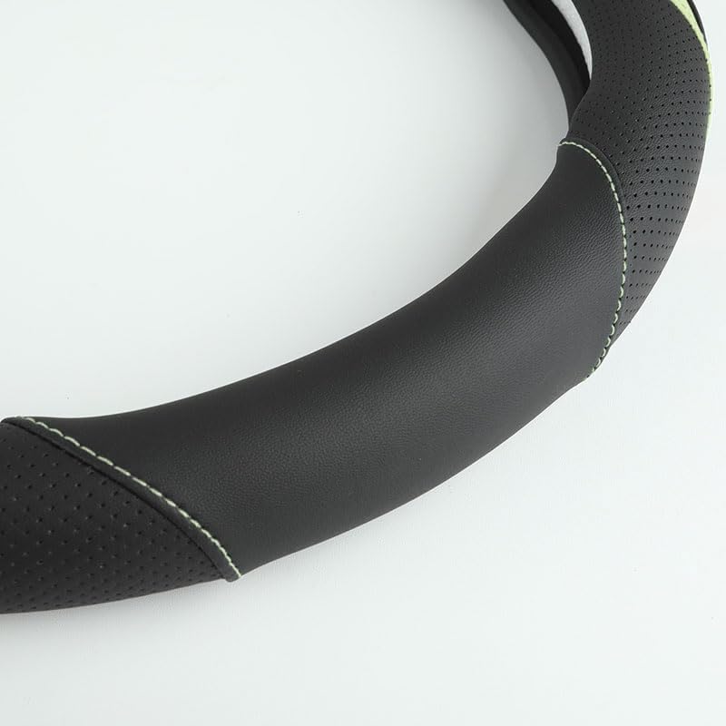 Car Steering Wheel Cover, Leather Steering Wheel Cover Green Universal 14.5-15 Inch Microfiber Leather Anti-Slip Breathable Auto Steering Wheel Covers for Men Women (Black&Green)