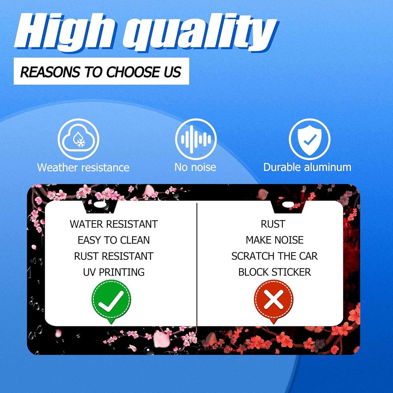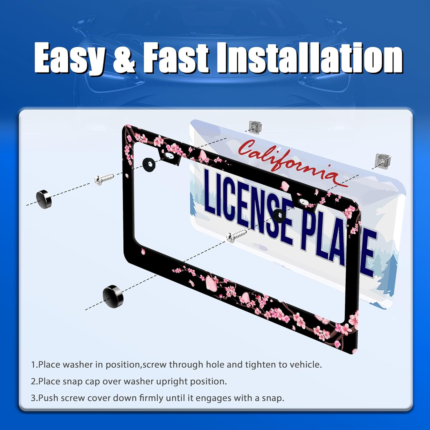 - Design:Use Advanced digital printing Protects license plate frames from Whether it's a car wash, heavy rain or hot weather, it still looks brand new,Let your car still be unique and stylish while driving on the road