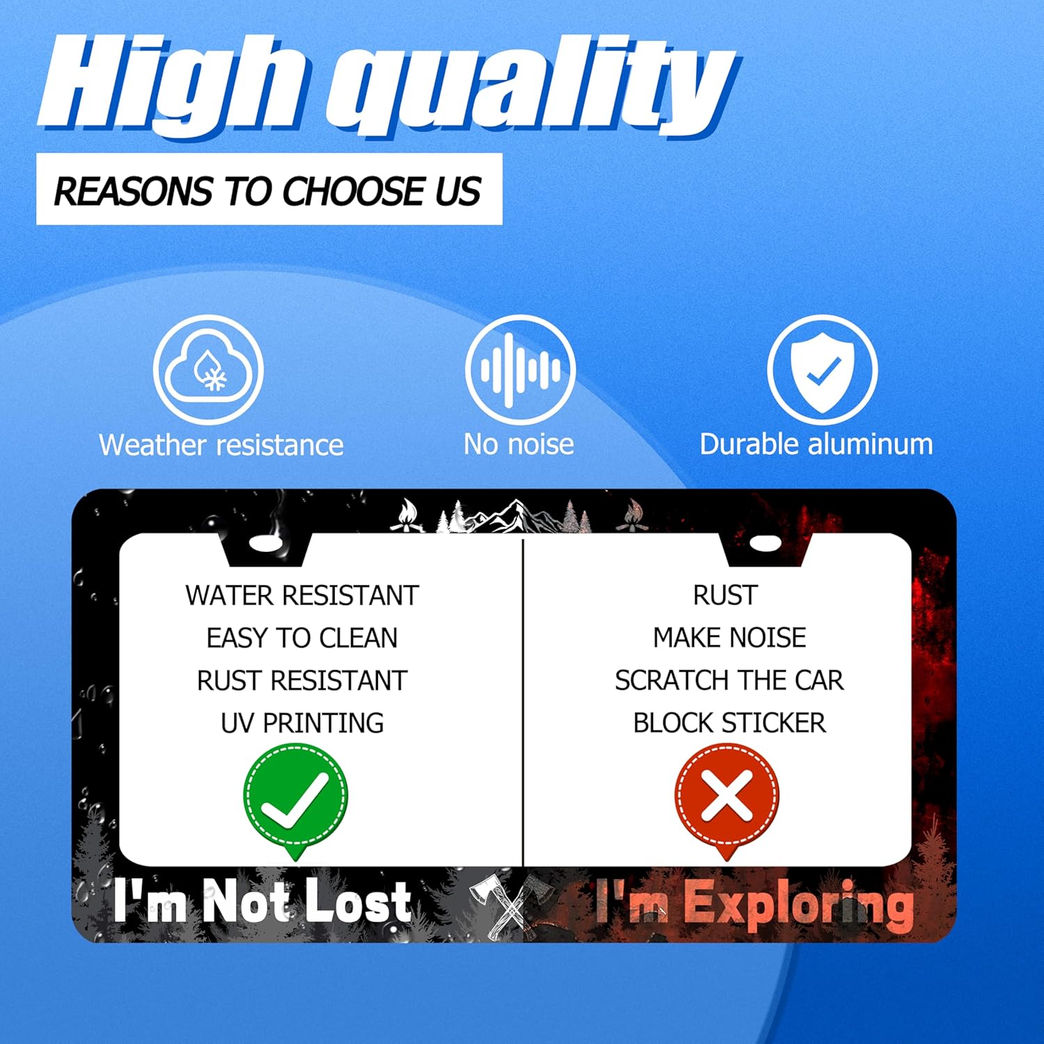 Funny License Plate Frame I'm Not Lost I'm Exploring License Plate Stainless Steel Mountain License Plate Holder Black Car Accessories Decoration With 2 Screws Fits Standard Vehicles Size 12.3" x 6.3"