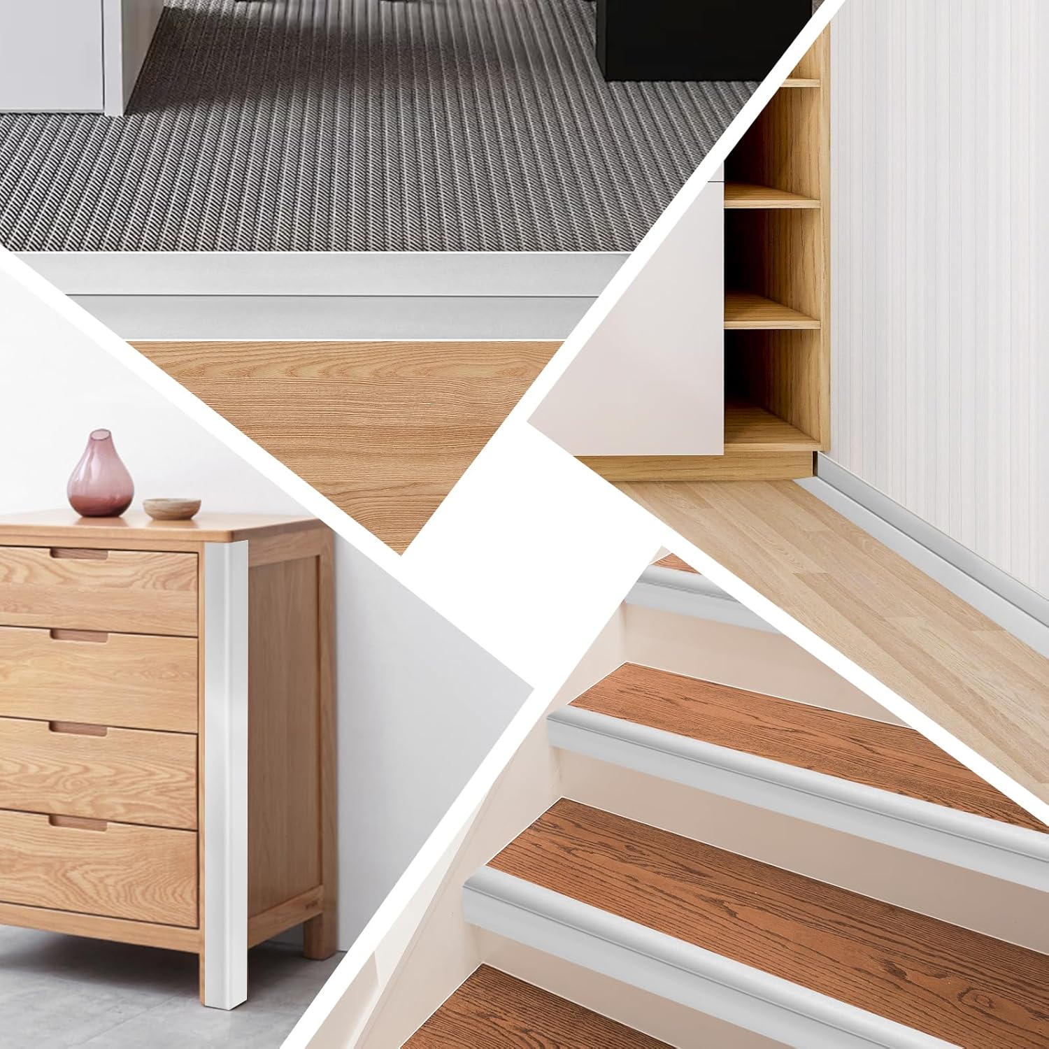 - 2.Premium Material: Crafted from high-quality material, our peel and stick corner trim boasts exceptional flexibility and wear resistance. Designed to withstand daily wear and tear, they maintain their pristine appearance over time.