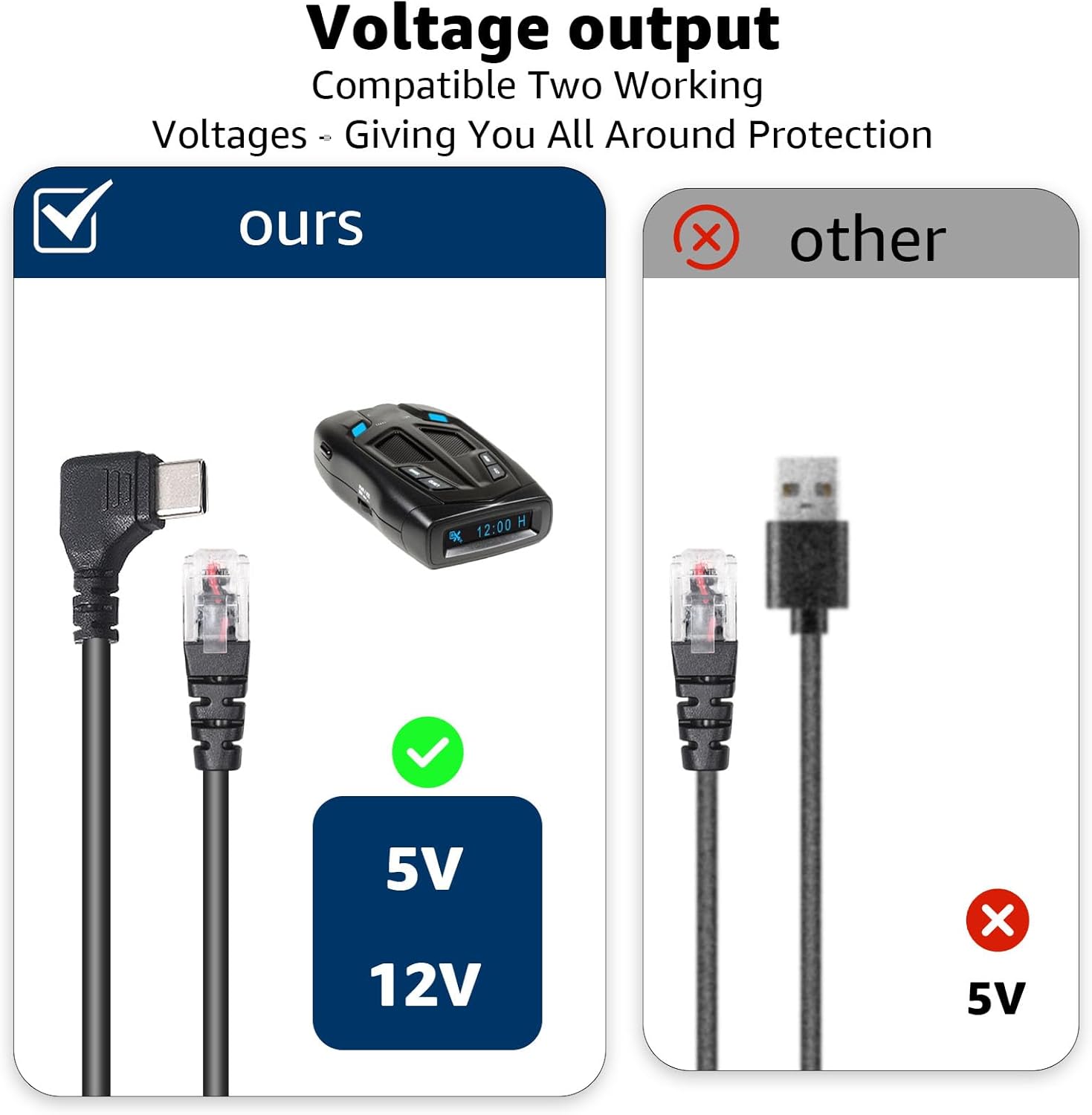 - Universal Compatibility: Compatible with a wide range of radar detectors from top brands like Escort, Uniden, Radenso, Beltronics, Cobra, and more, this USB 5V-12V power cable ensures a smooth and hassle-free connection for your device.(Note: Not compatible with Valentine One.)