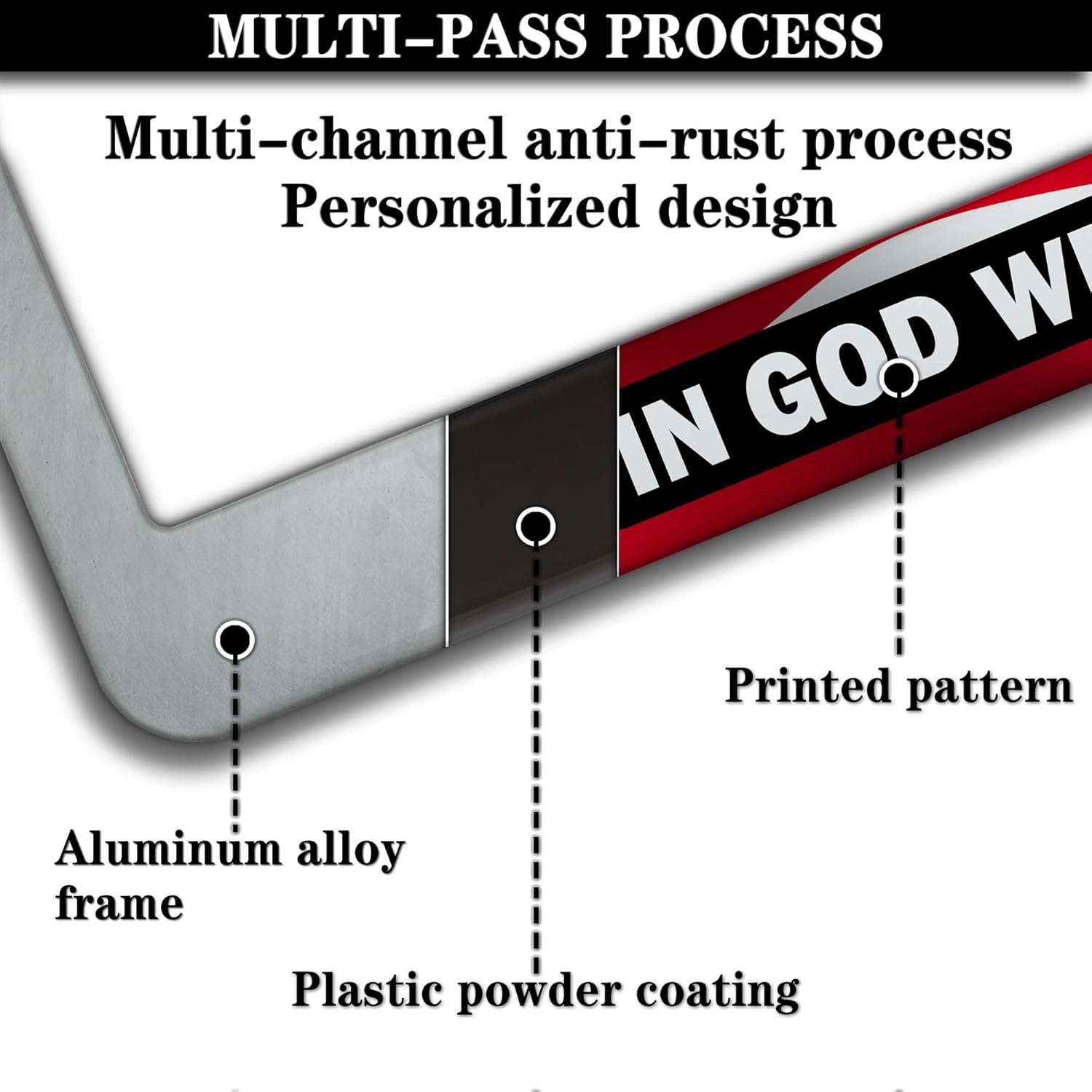 - ALUMINUM FRAME: This License Plate Frame is crafted from high-quality aluminum that is resistant to corrosion, rust, and harsh weather conditions. Its rugged reliability design ensures a long lifespan, making it capable of withstanding car washes and extreme weather, providing you with a reliable and stylish solution for your vehicle.