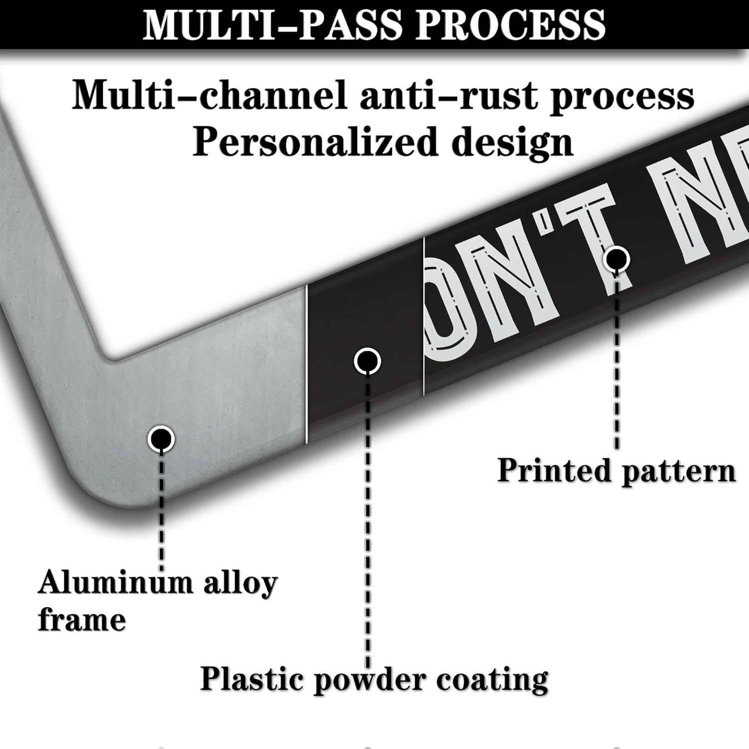 - FUNNY DESIGN: Featuring a unique and customized design, this license plate frame creates an eye-catching and bold statement for your vehicle. Not only does it add a touch of personality to your car, but it also makes for a great holiday gift, souvenir, or decorative piece for family, friends, and colleagues. Elevate your vehicle's style while sharing a laugh!
