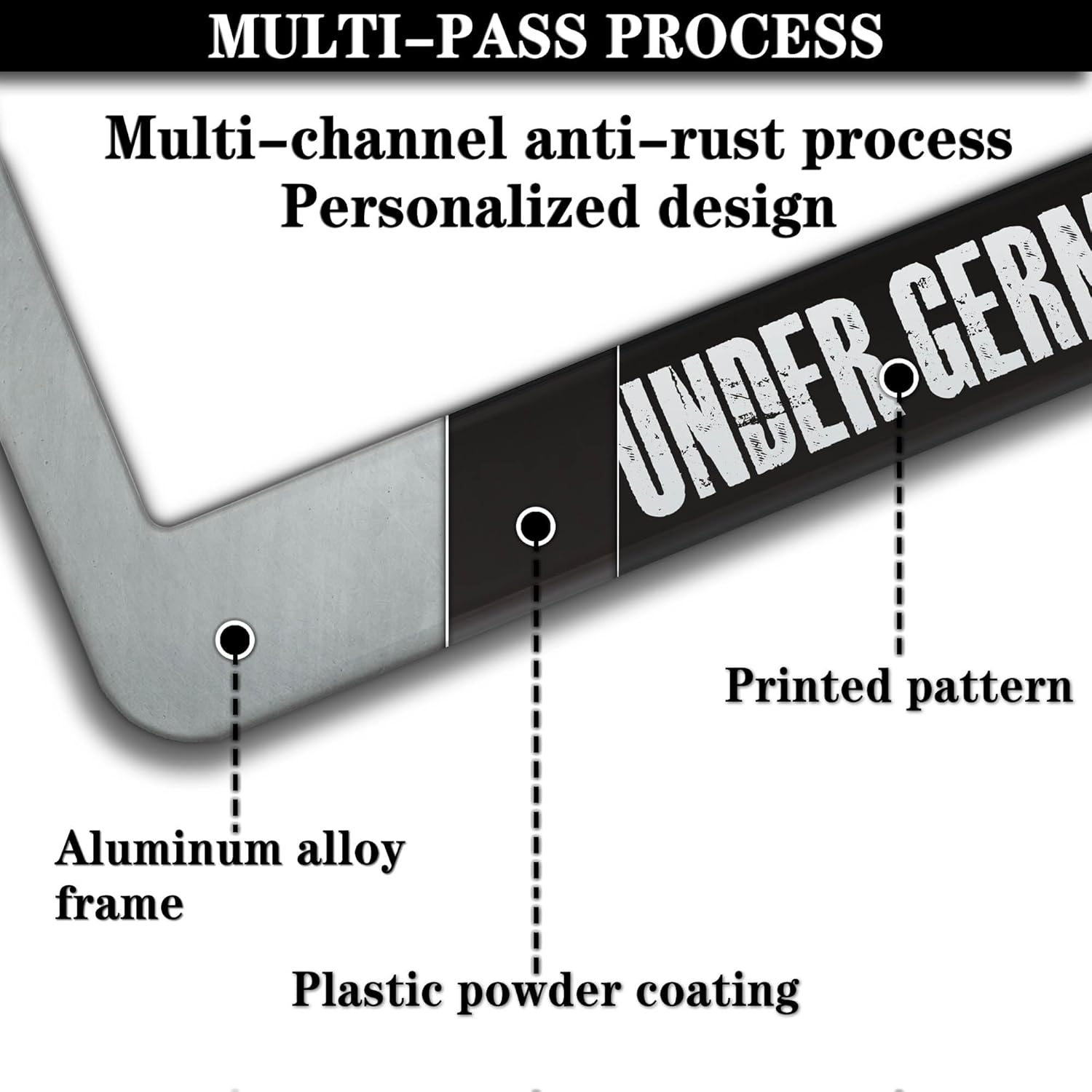 - ALUMINUM FRAME: This License Plate Frame is crafted from high-quality aluminum that is resistant to corrosion, rust, and harsh weather conditions. Its rugged reliability design ensures a long lifespan, making it capable of withstanding car washes and extreme weather, providing you with a reliable and stylish solution for your vehicle.