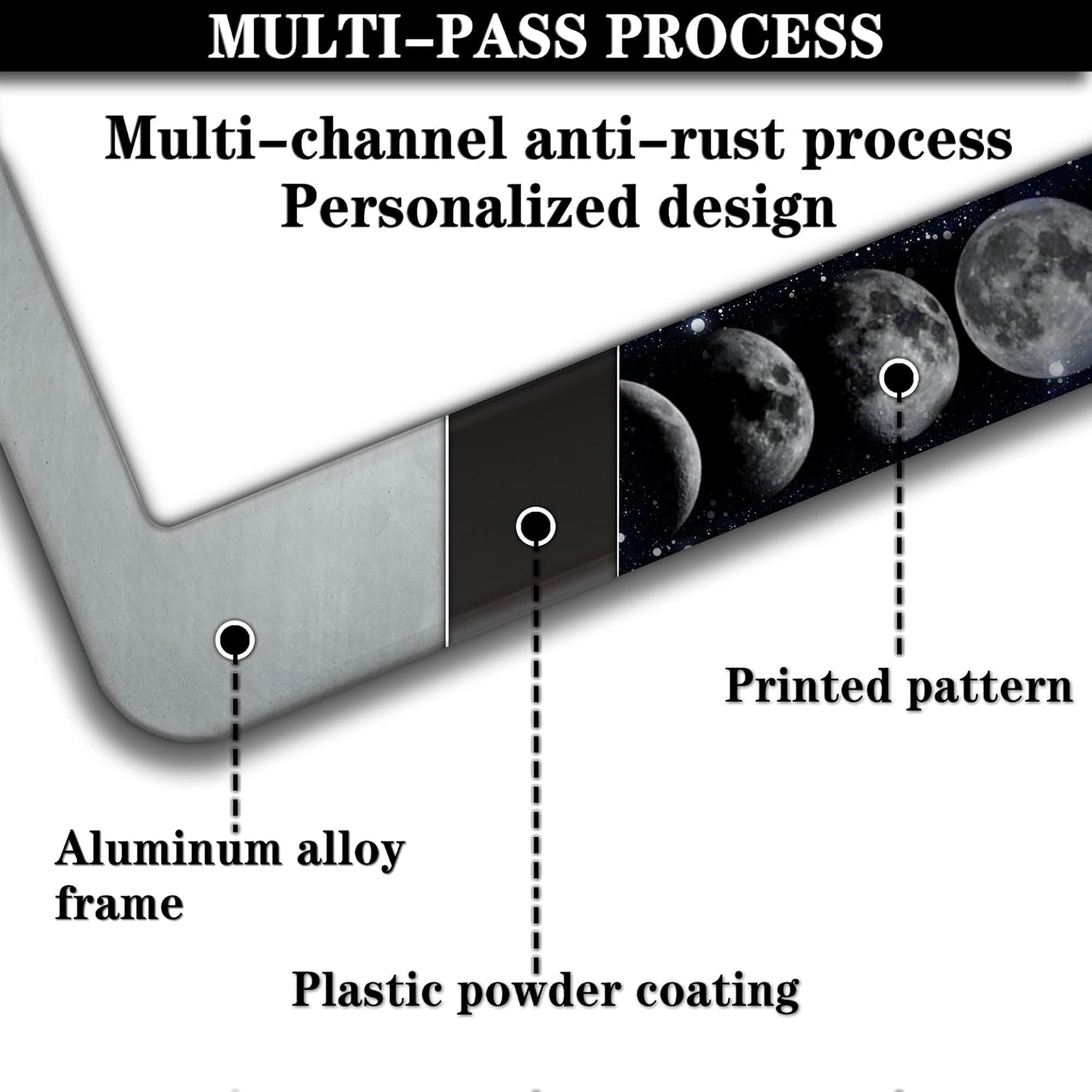 Automotive Exterior Accessories Black and White License Plate Frames Celestial Moon Phases Aluminum Metal Car Accessory 2 Pack with Screw Covers Set