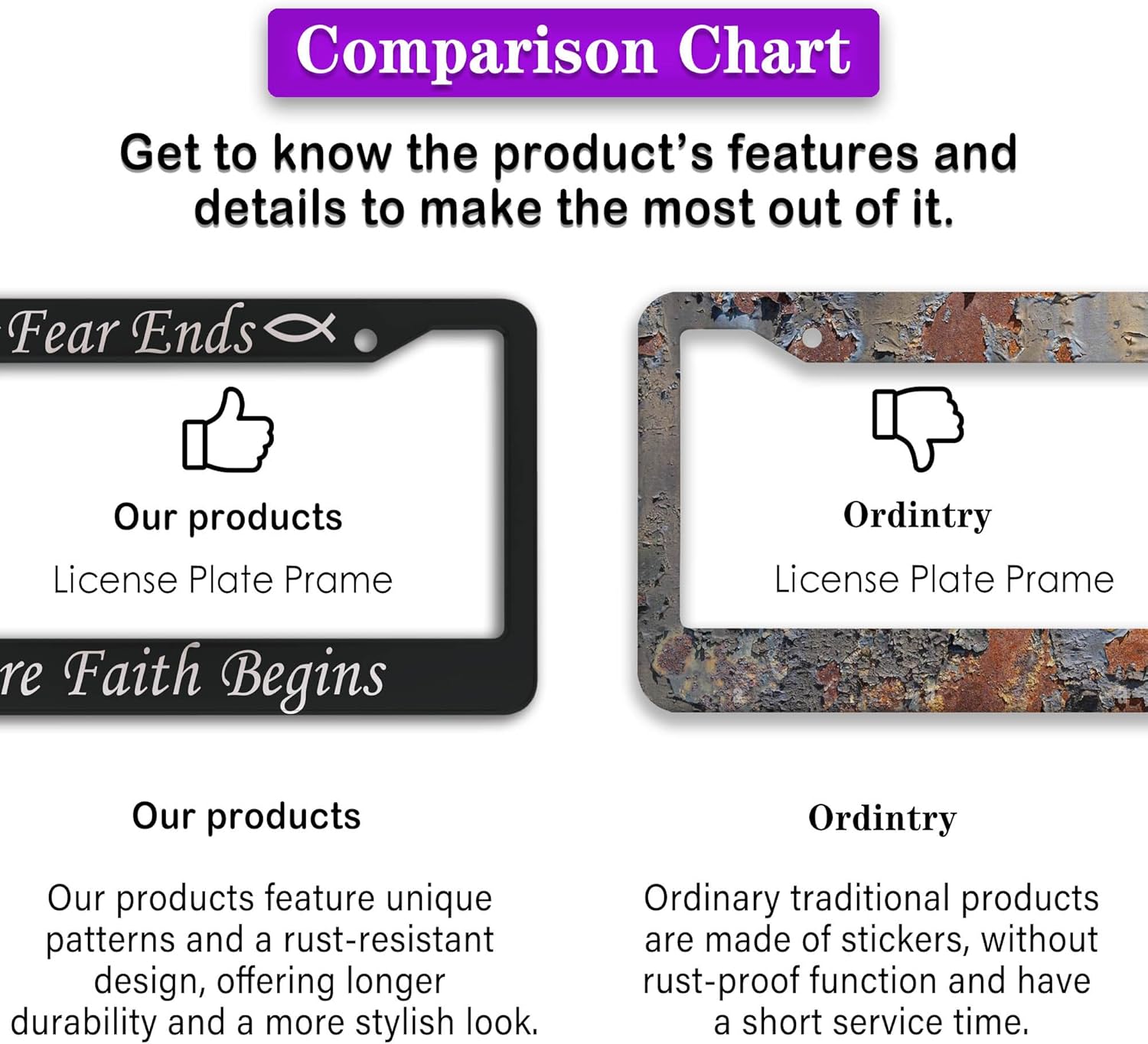 License Plate Frames Black and White Car Plate Frame Fear Ends When Faith Begins Aluminum Metal Car Accessory 2 Pack with Screw Covers Set