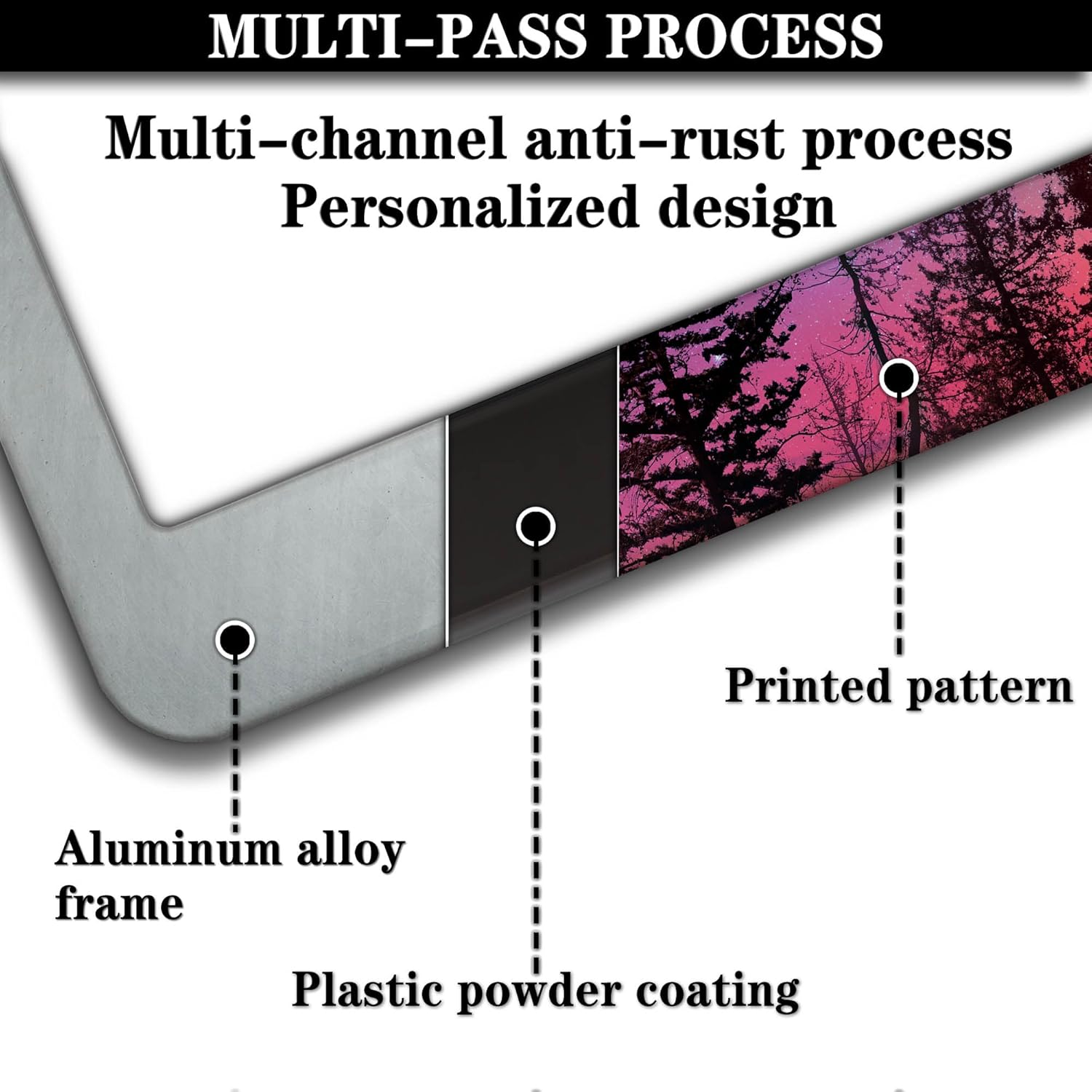 - ALUMINUM FRAME: This License Plate Frame is crafted from high-quality aluminum that is resistant to corrosion, rust, and harsh weather conditions. Its rugged reliability design ensures a long lifespan, making it capable of withstanding car washes and extreme weather, providing you with a reliable and stylish solution for your vehicle.