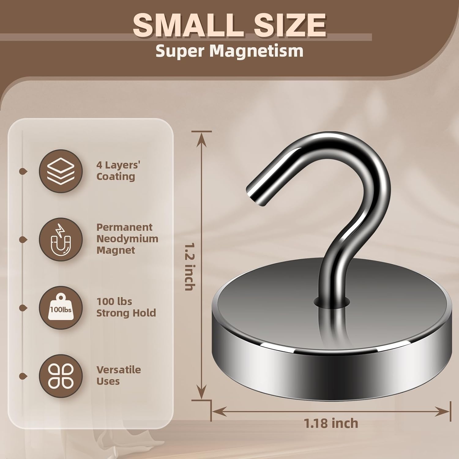 - โ VERSATILE USE- Neosmukโs strong neodymium magnetic hooks were endowed with a strong capability for holding various items wherever there is iron or steel. This magnet hook is a perfect magnetic key holder. You can also hang your tools next to the toolbox with this magnetic hook. Our magnetic hooks are great for grill, pot, cup, utensils, and oven.