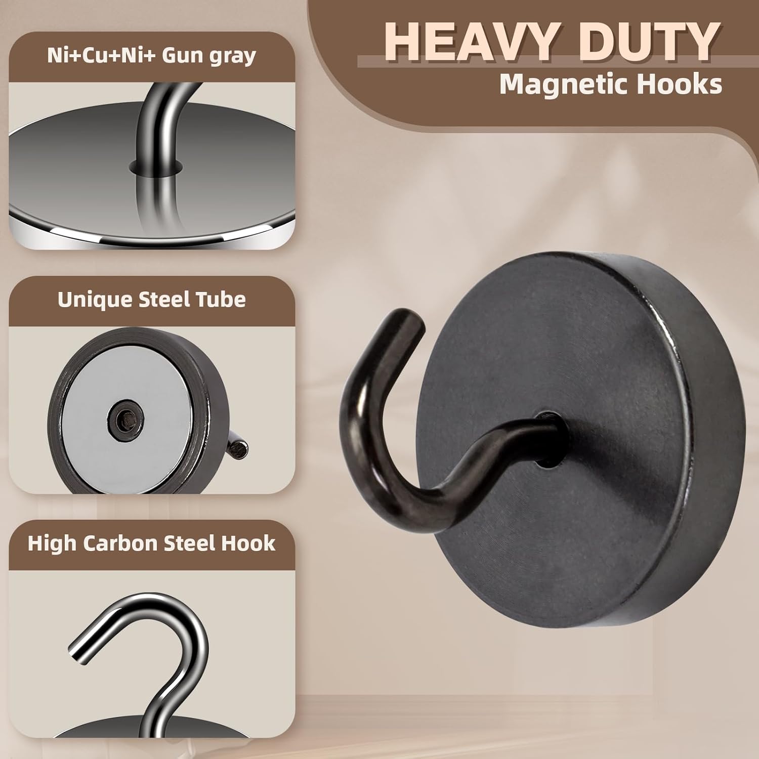 Neosmuk Magnetic Hooks, Cruise Ship Essentials, 100lb+ Heavy Duty Magnetic Hooks for Cruise Cabins, Refrigerator, Grill, Hanging, and Travel | Extra Strong Must-Haves Magnet Hook,Gunmetal Color.