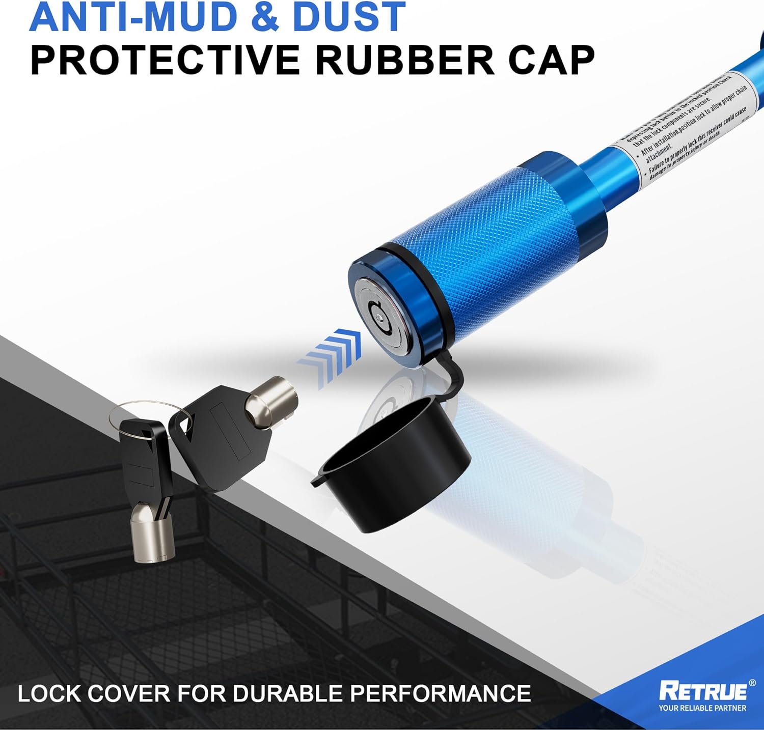 RETRUE Trailer Hitch Locks, 5/8" Locking Hitch Pin for 2 Inch and 2 1/2” Receiver Class III IV Hitch, Tow Hitch Lock with Keys O-Rings, Trailer Accessories for Outdoor,Blue