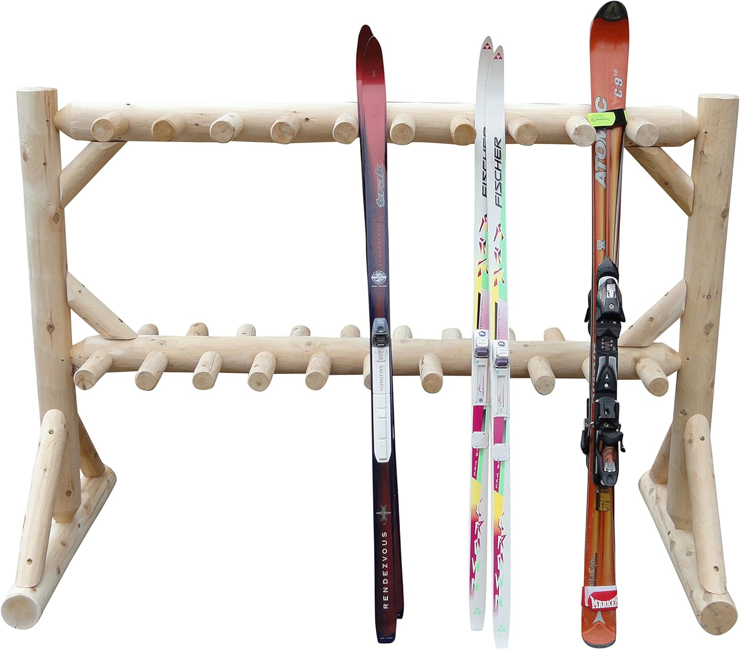 - HANDMADE IN NORTHERN WISCONSIN BY LOG ARTISANS: Handcrafted in the USA by experienced builders, this ski storage rack for garage showcases years of woodworking expertise. Built by artisans who specialize in log homes and furniture, it supports all your cold-weather gear. Whether you're organizing a home setup or commercial site, this garage ski rack or snowboard stand offers authentic craftsmanship and dependable performance.