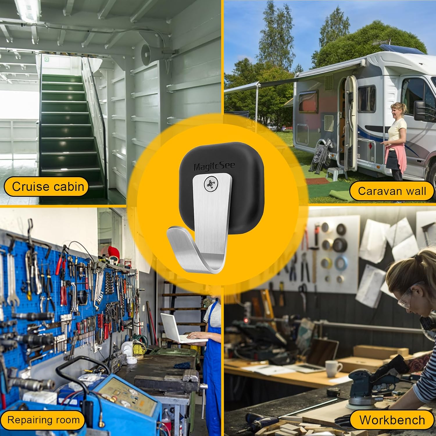 Upgraded Heavy Duty Magnetic Hook, Powerful Magnet Versalite Indoor and Outdoor Tool Towel Brooms Coat Hanger for Cruise Garage RV Workshop Tool Box, Magnet Organize Stainless 304 Hooks,4 Pack