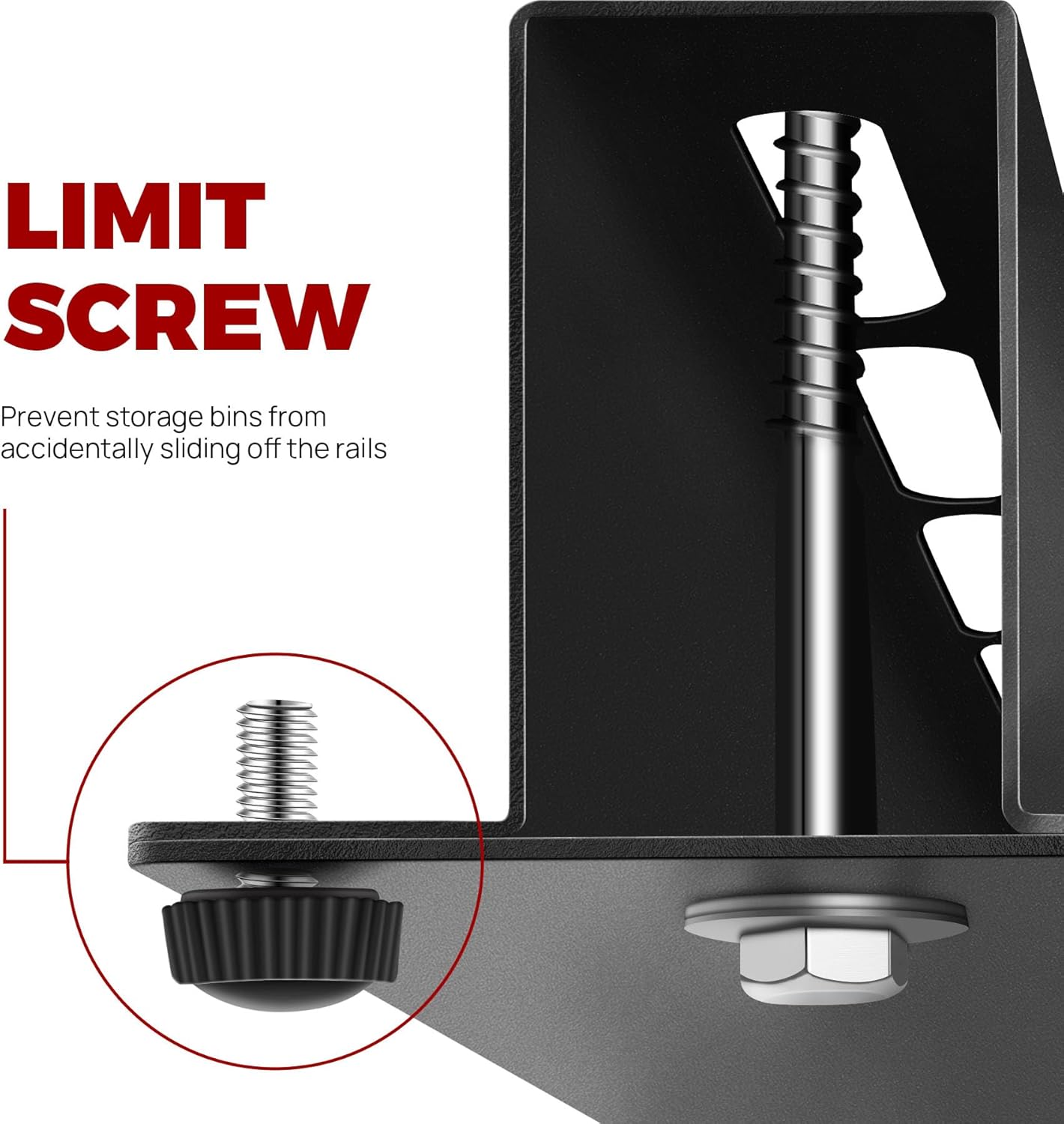 - [Adjustable] - Each set of this garage ceiling storage rack is customizable, with adjustable design and a safety bolt to support most storage bins and prevent them from falling