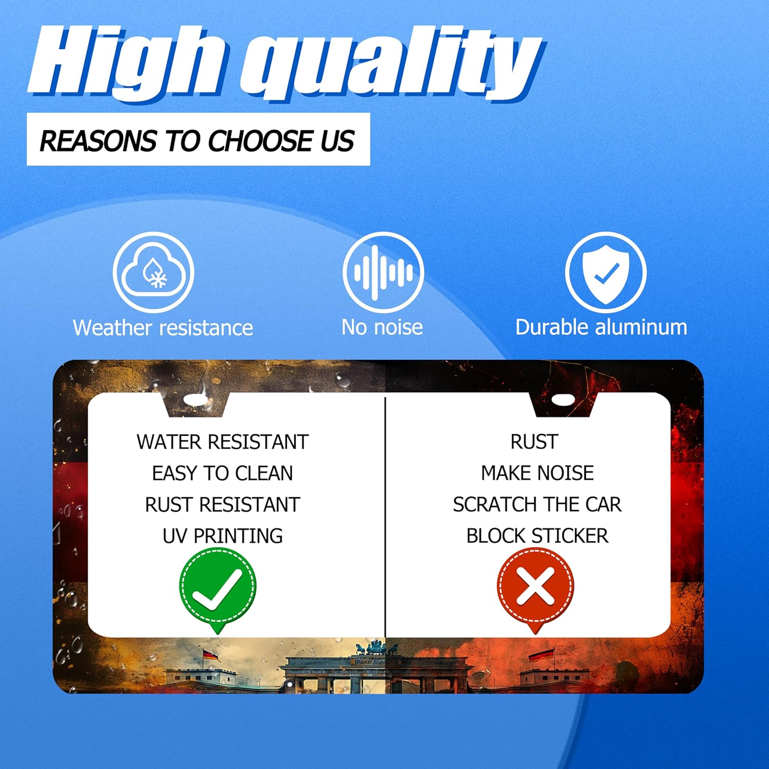 German Flag License Plate Frame Vintage Germany License Plate Stainless Steel Funny License Plate Holder Personalise Car Accessory Car Decoration 12.3"x6.3"Fits Standard Vehicles Size